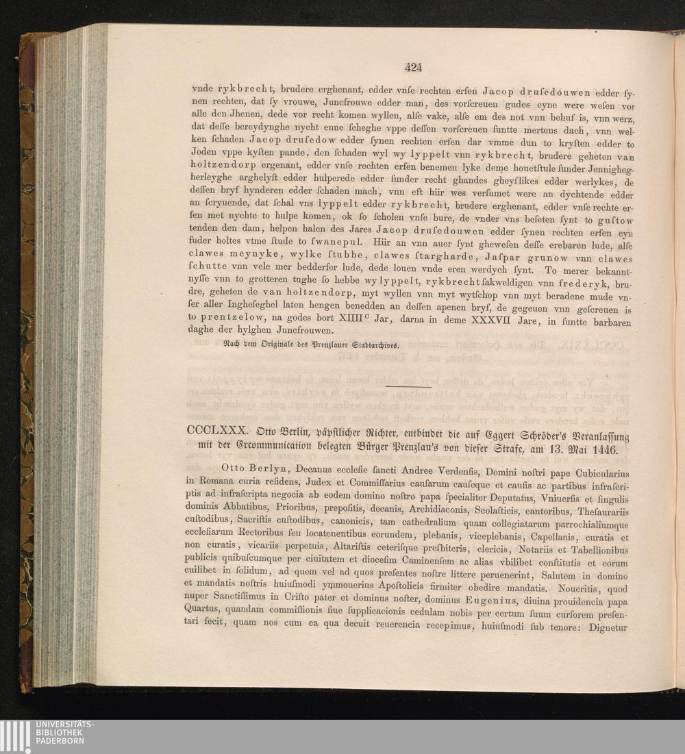 CCCLXXX. Otto Berlin, päpstlicher Richter, entbindet die auf Eggert Schröder’s Veranlassung[...]