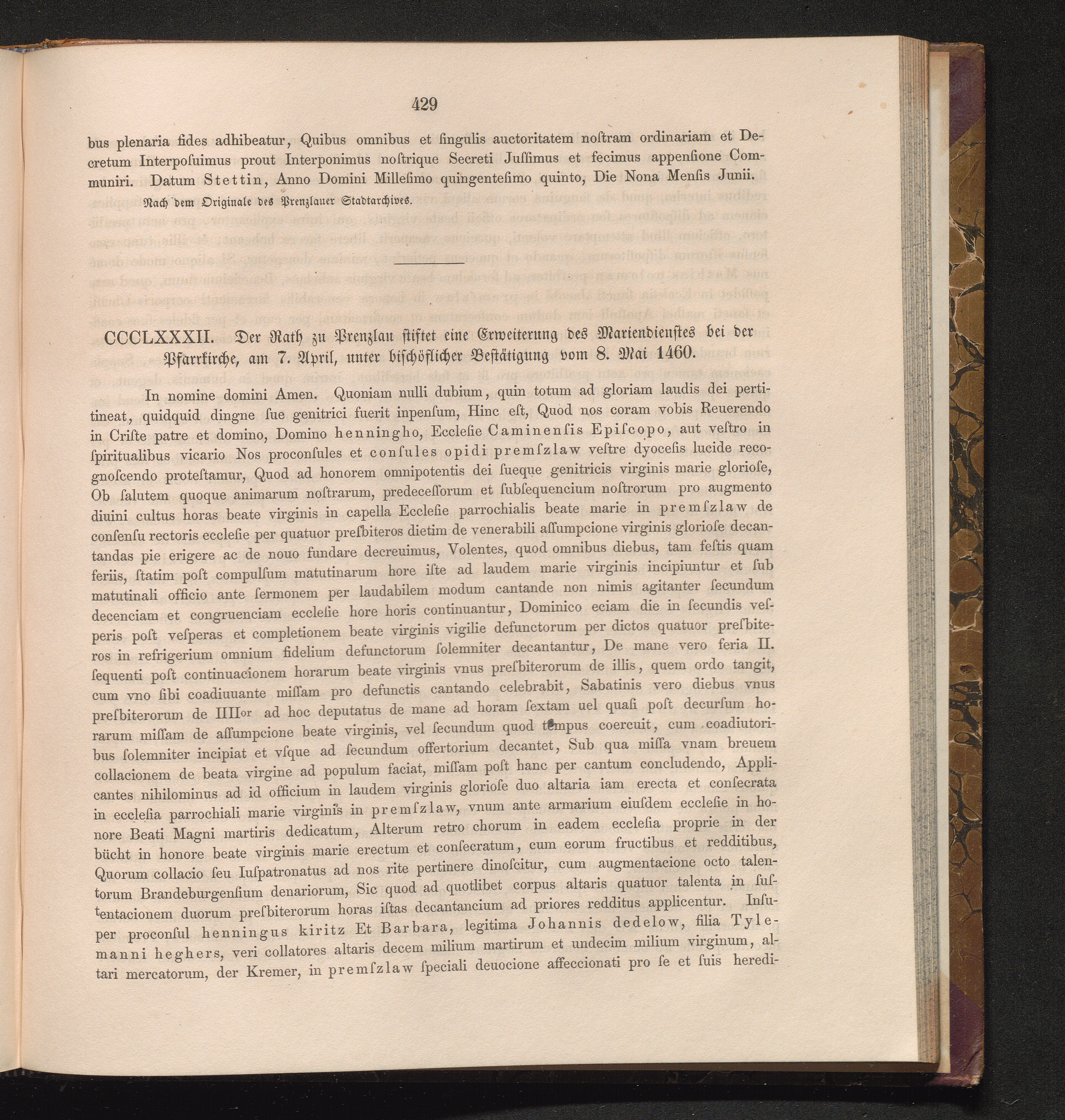 CCCLXXXII. Der Rath zu Prenzlau stiftet eine Erweiterung des Mariendienstes bei der[...]