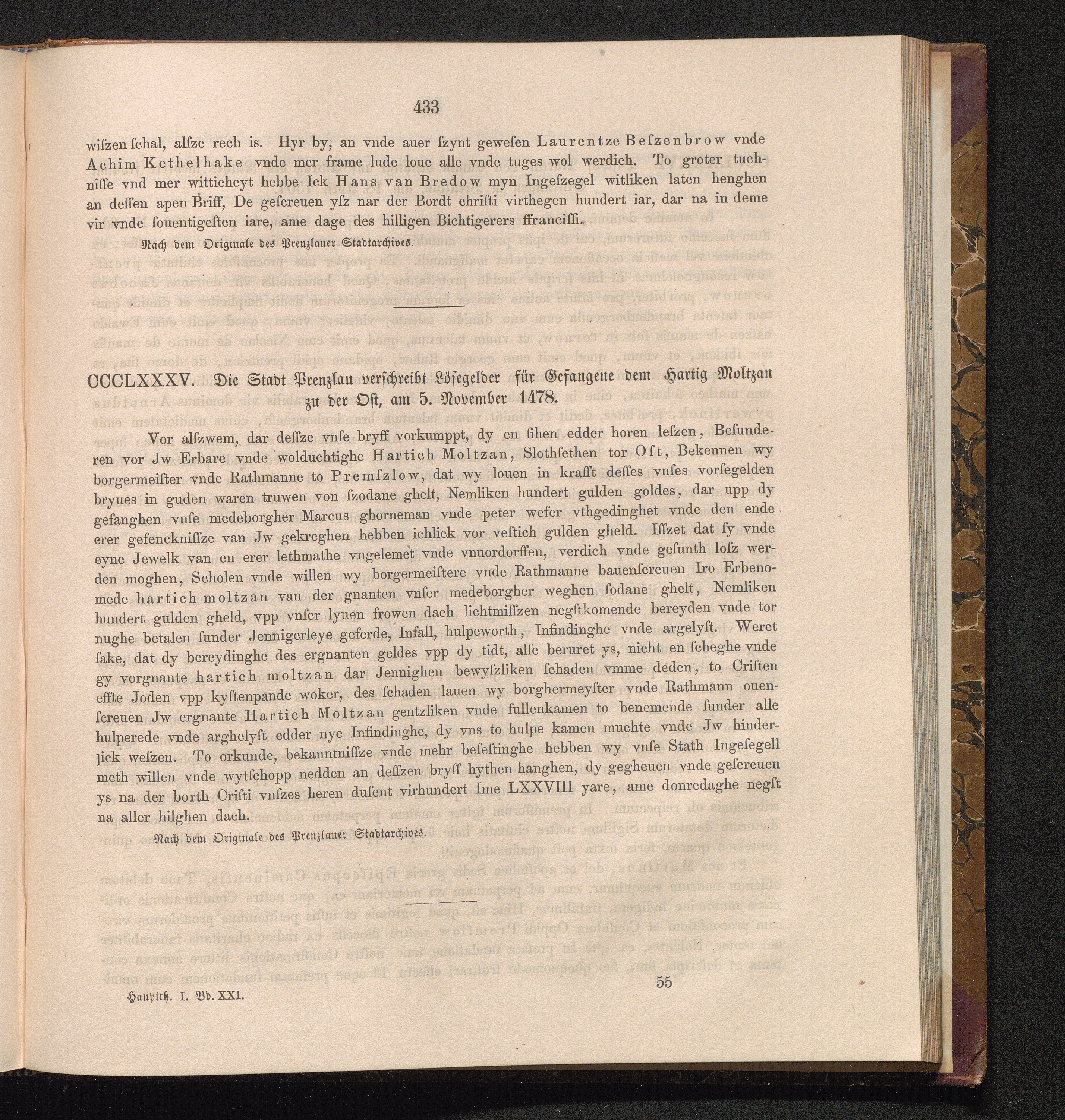 CCCLXXXV. Die Stadt Prenzlau verschreibt Lösegelder für Gefangene dem Hartig Moltzan[...]