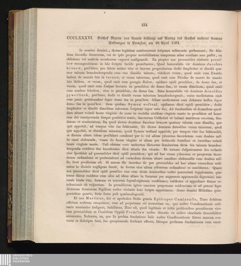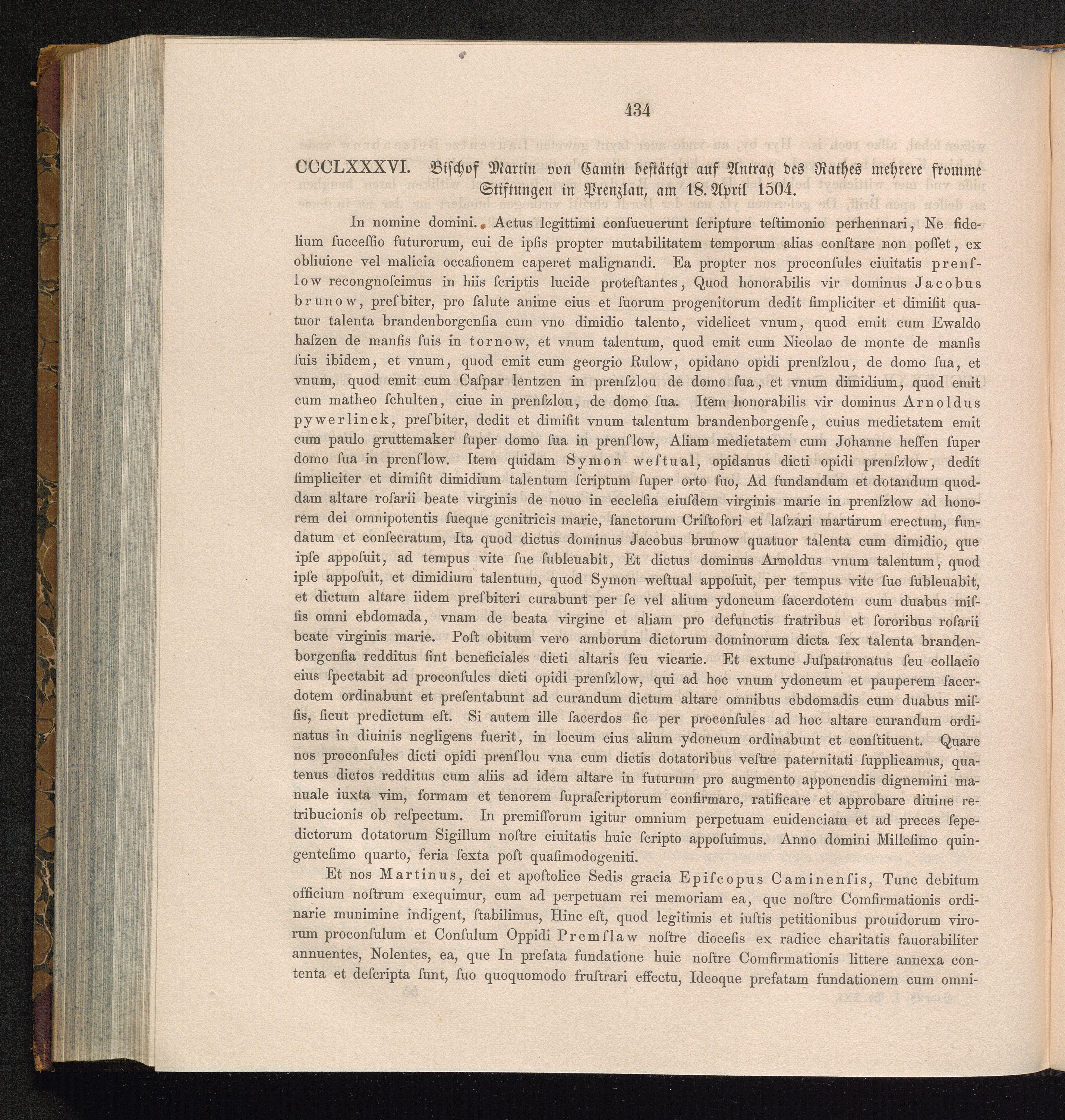CCCLXXXVI. Bischof Martin von Camin bestätigt auf Antrag des Rathes mehrere fromme[...]