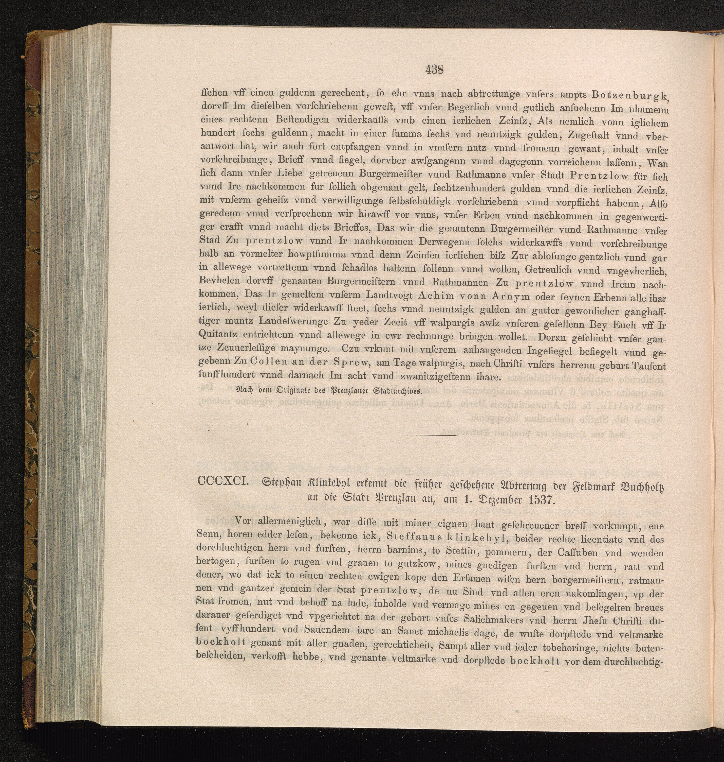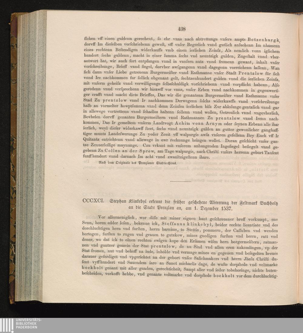 CCCXCI. Stephan Klinkebyl erkennt die früher geschehene Abtretung der Feldmark Buchholtz[...]