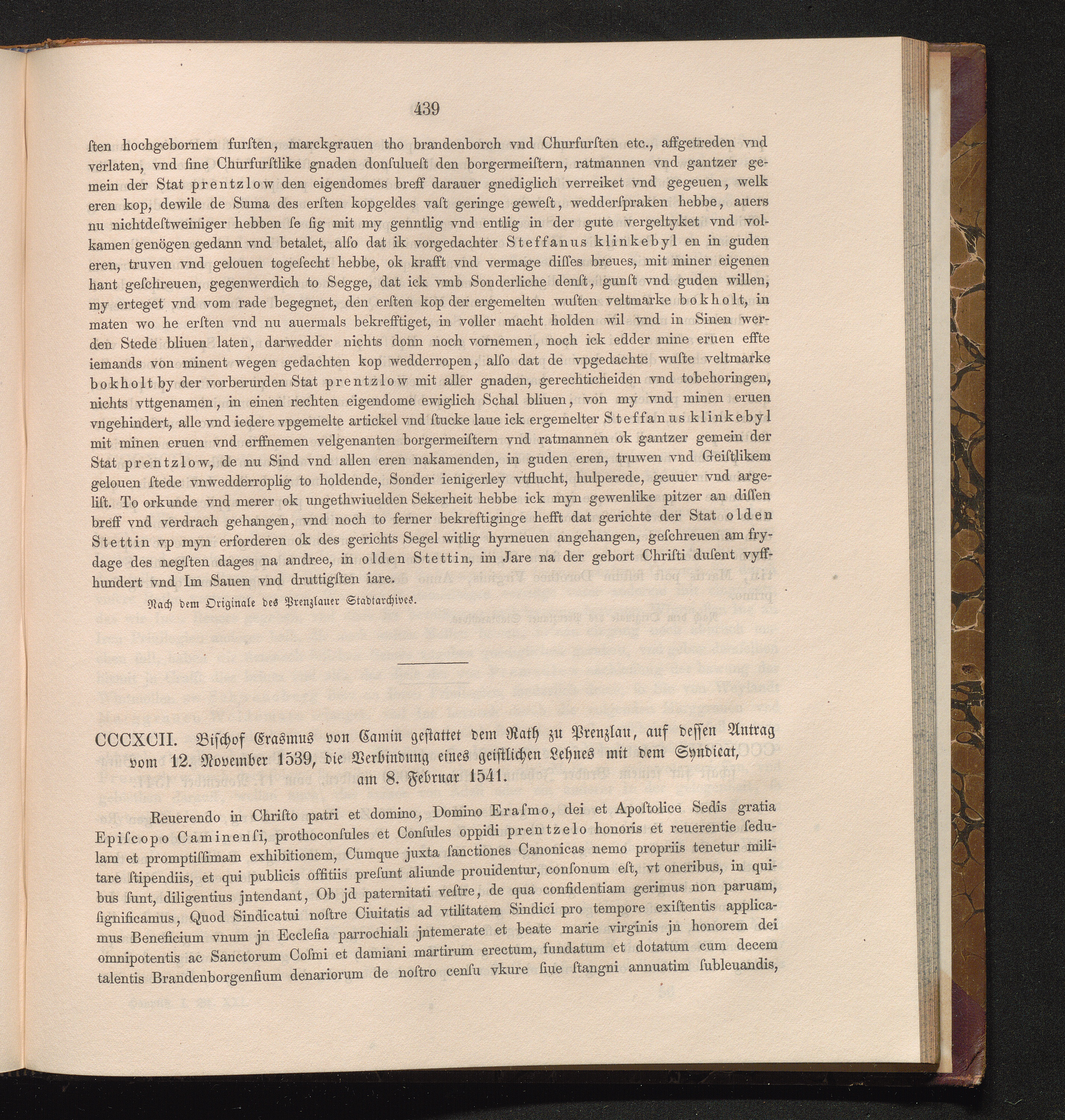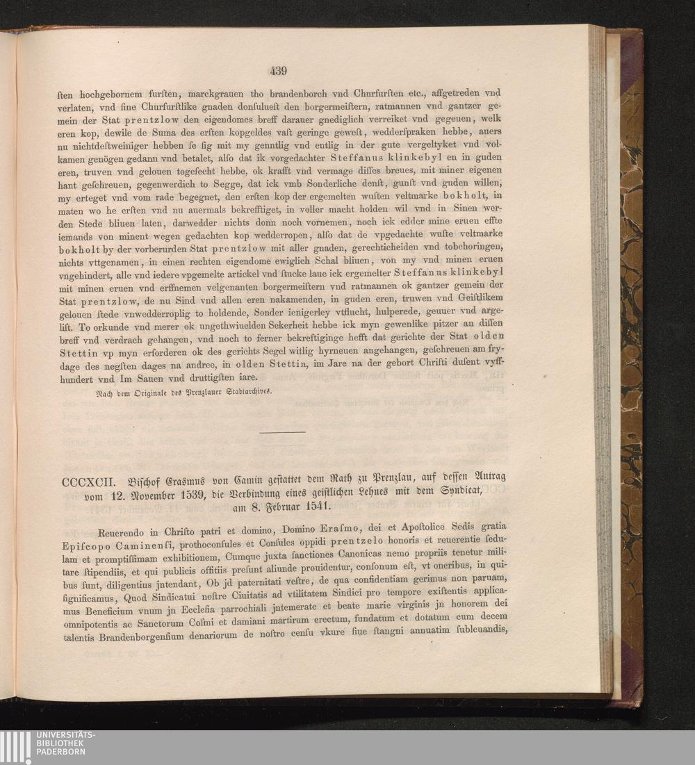 CCCXCII. Bischof Erasmus von Camin gestattet dem Rath zu Prenzlau, auf dessen Antrag[...]