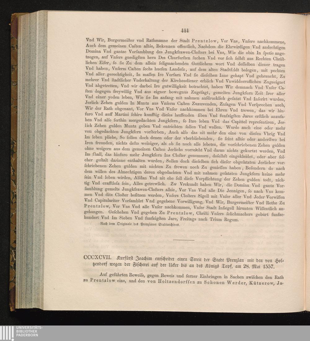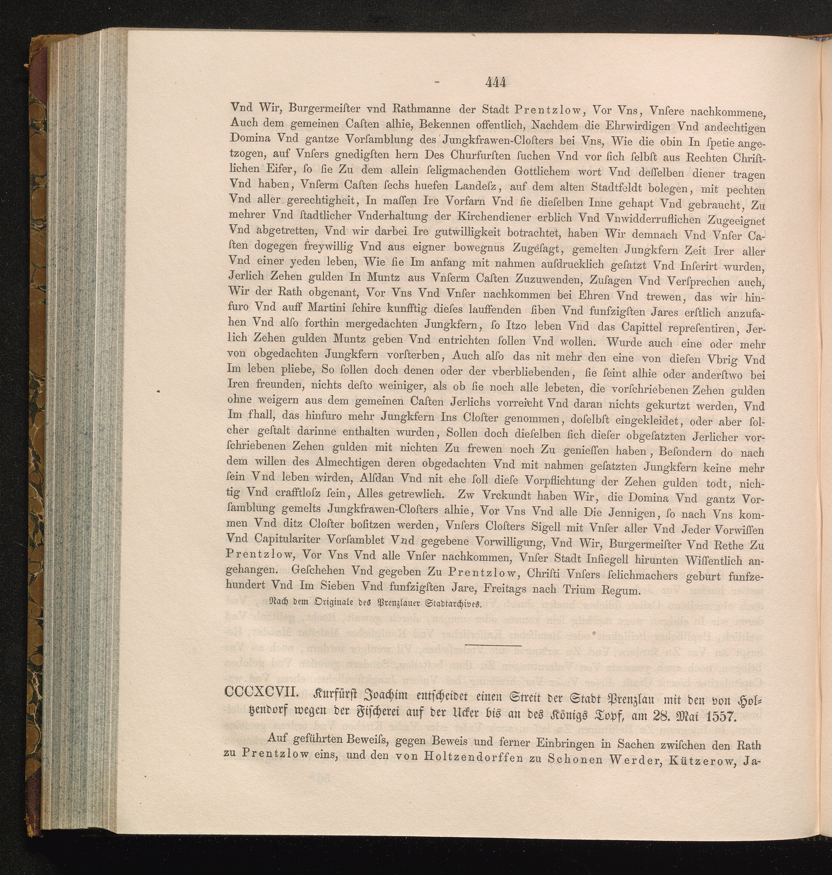 CCCXCVII. Kurfürst Joachim entscheidet einen Streit der Stadt Prenzlau mit den von[...]