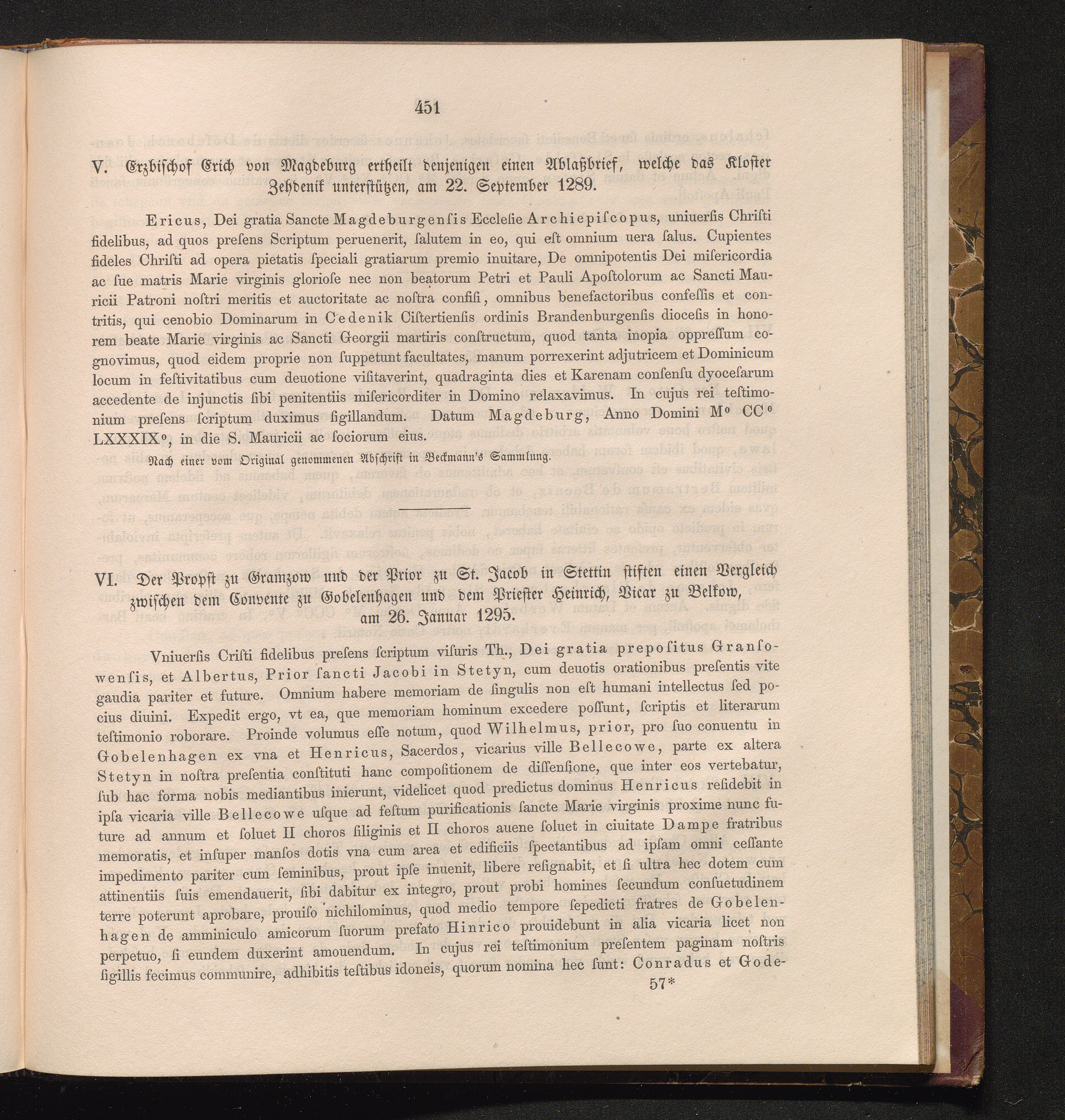 VI. Der Probst zu Gramzow und der Prior zu St. Jacob in Stettin stiften einen Vergleich[...]