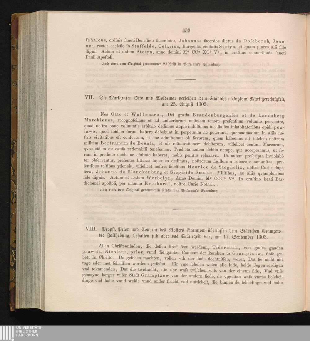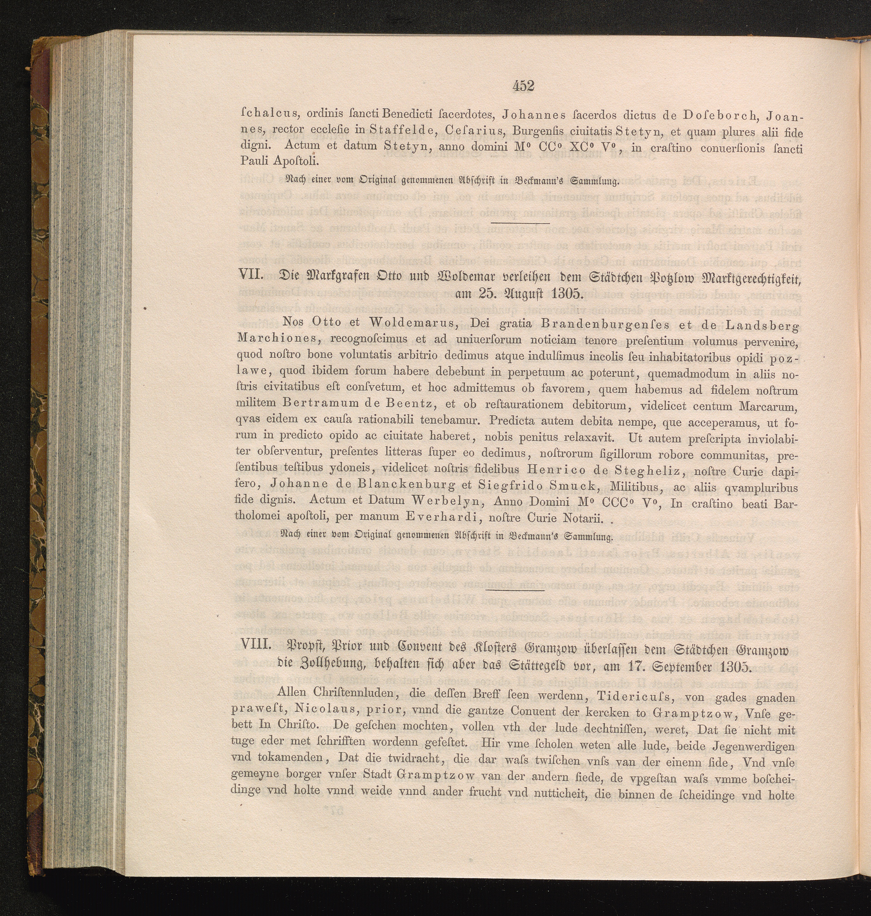 VIII. Probst, Prior und Convent des Klosters Gramzow überlassen dem Städtchen Gramzow[...]