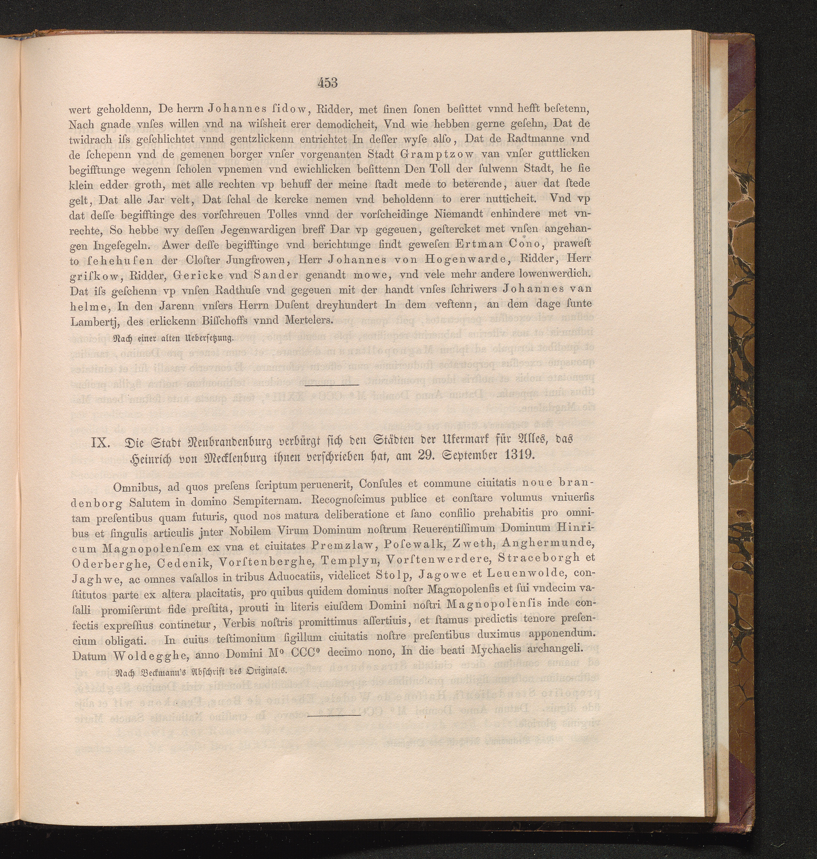 IX. Die Stadt Neubrandenburg verbürgt sich den Städten der Ukermark für Alles, das[...]