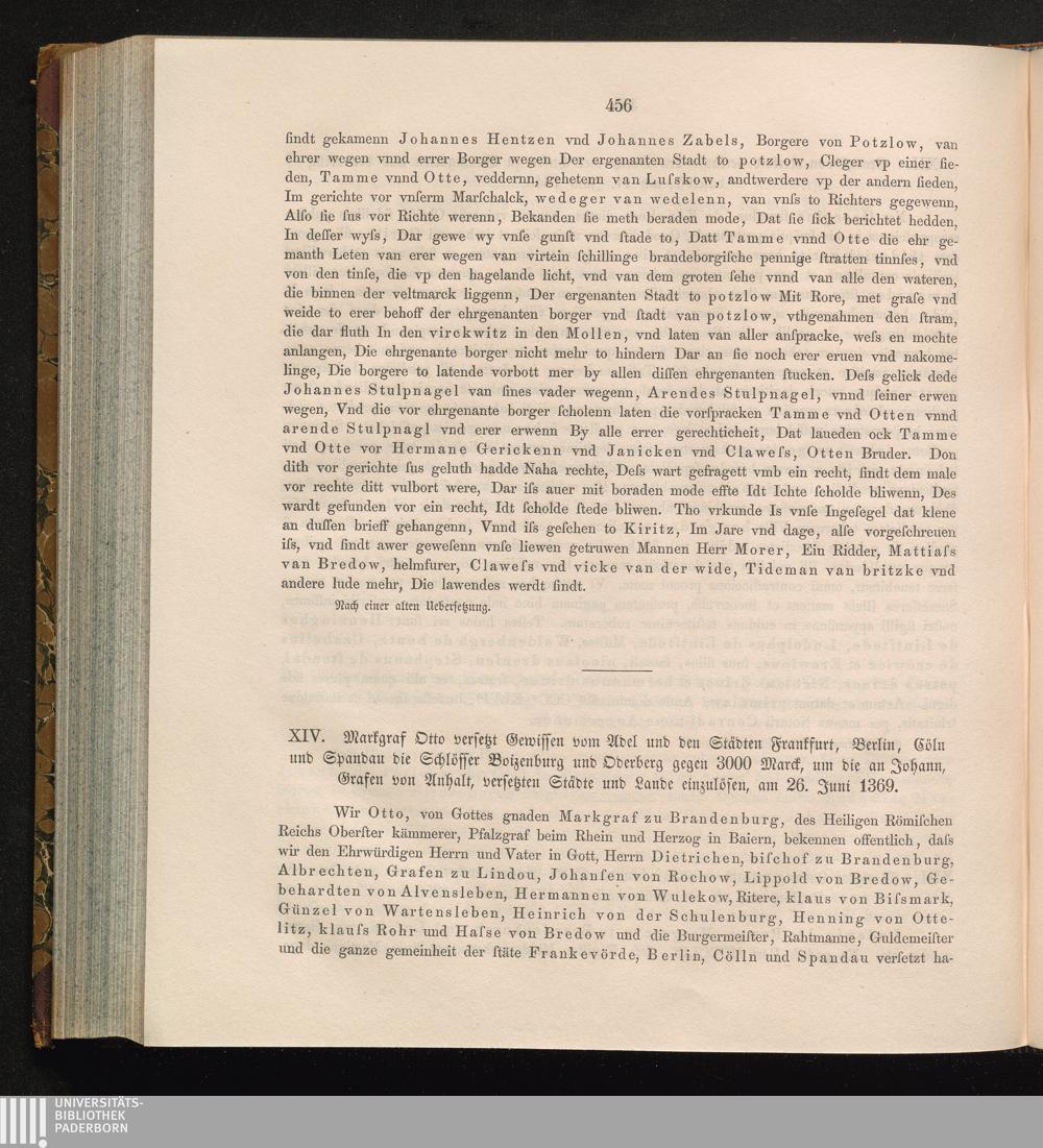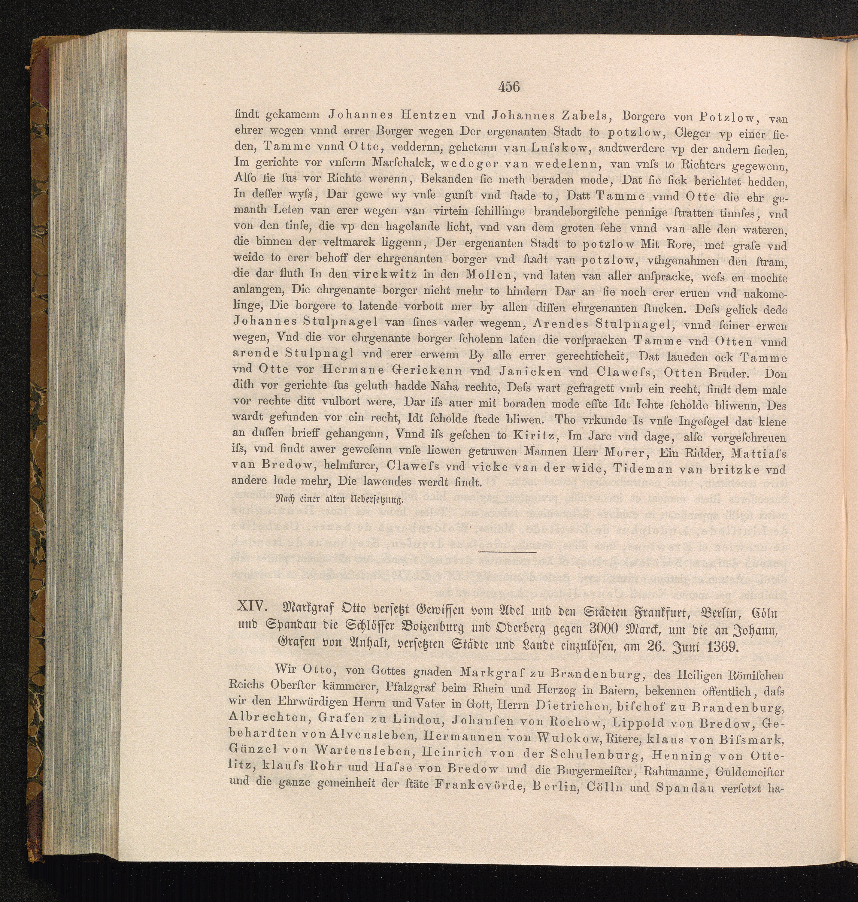 XIV. Markgraf Otto versetzt Gewissen vom Adel und den Städten Frankfurt, Berlin,[...]