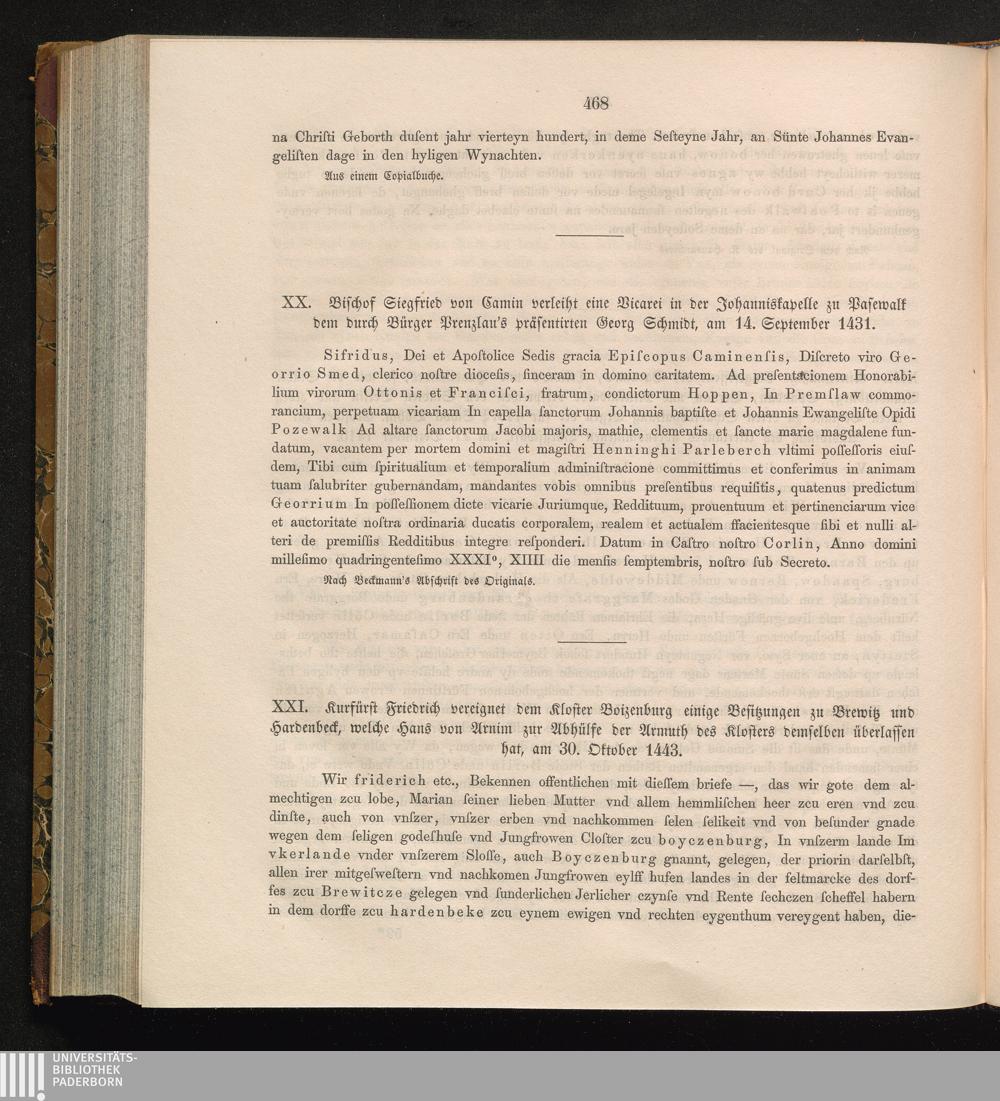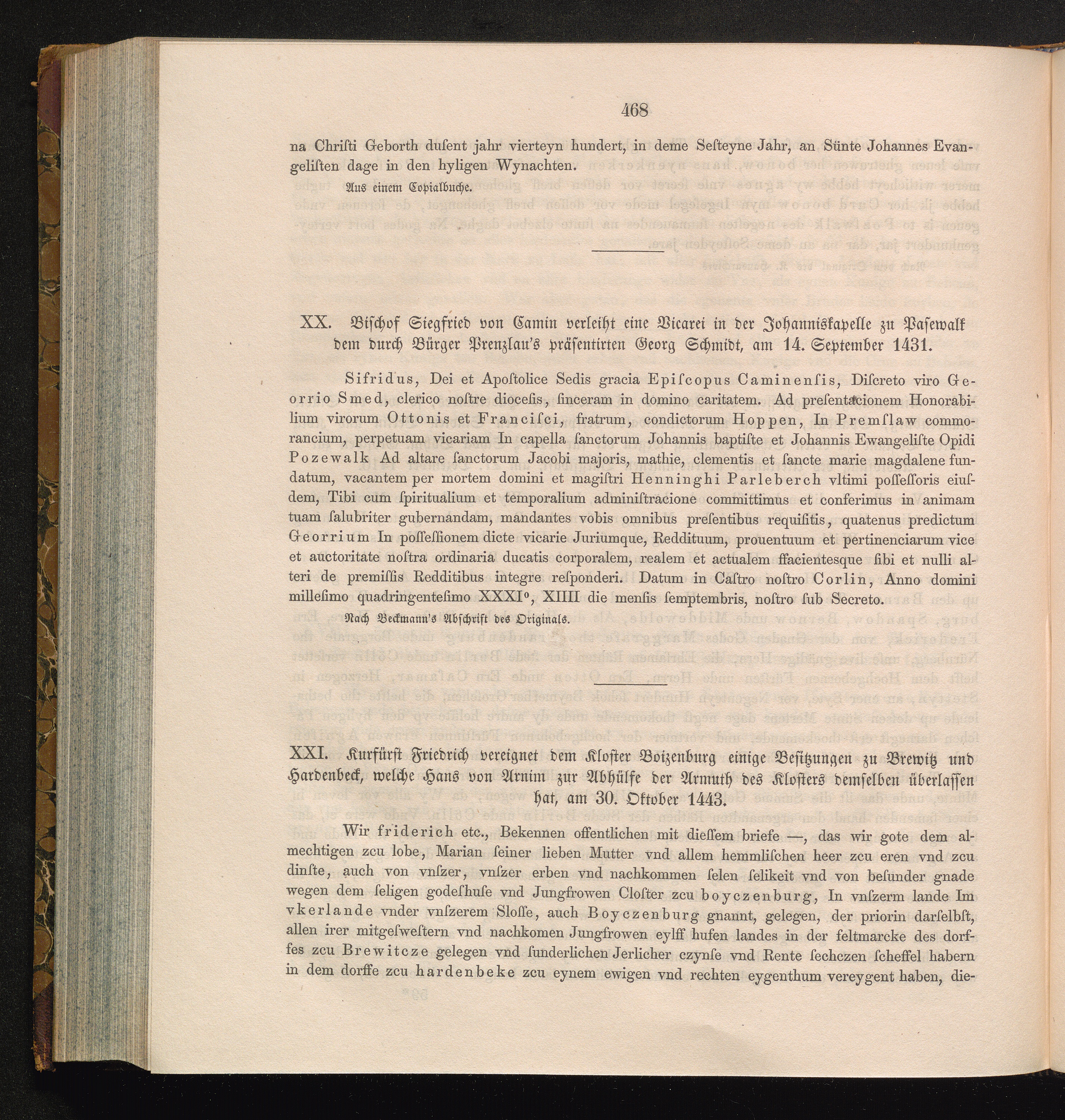XXI. Kurfürst Friedrich vereignet dem Kloster Boizenburg einige Besitzungen zu Brewitz[...]