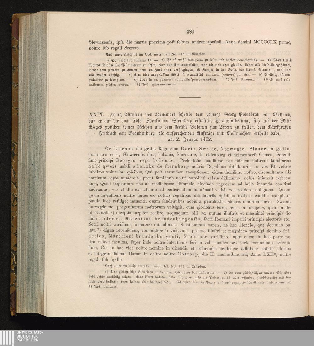 XXIX. König Christian von Dänemark schreibt dem Könige Georg Podiebrad von Böhmen,[...]