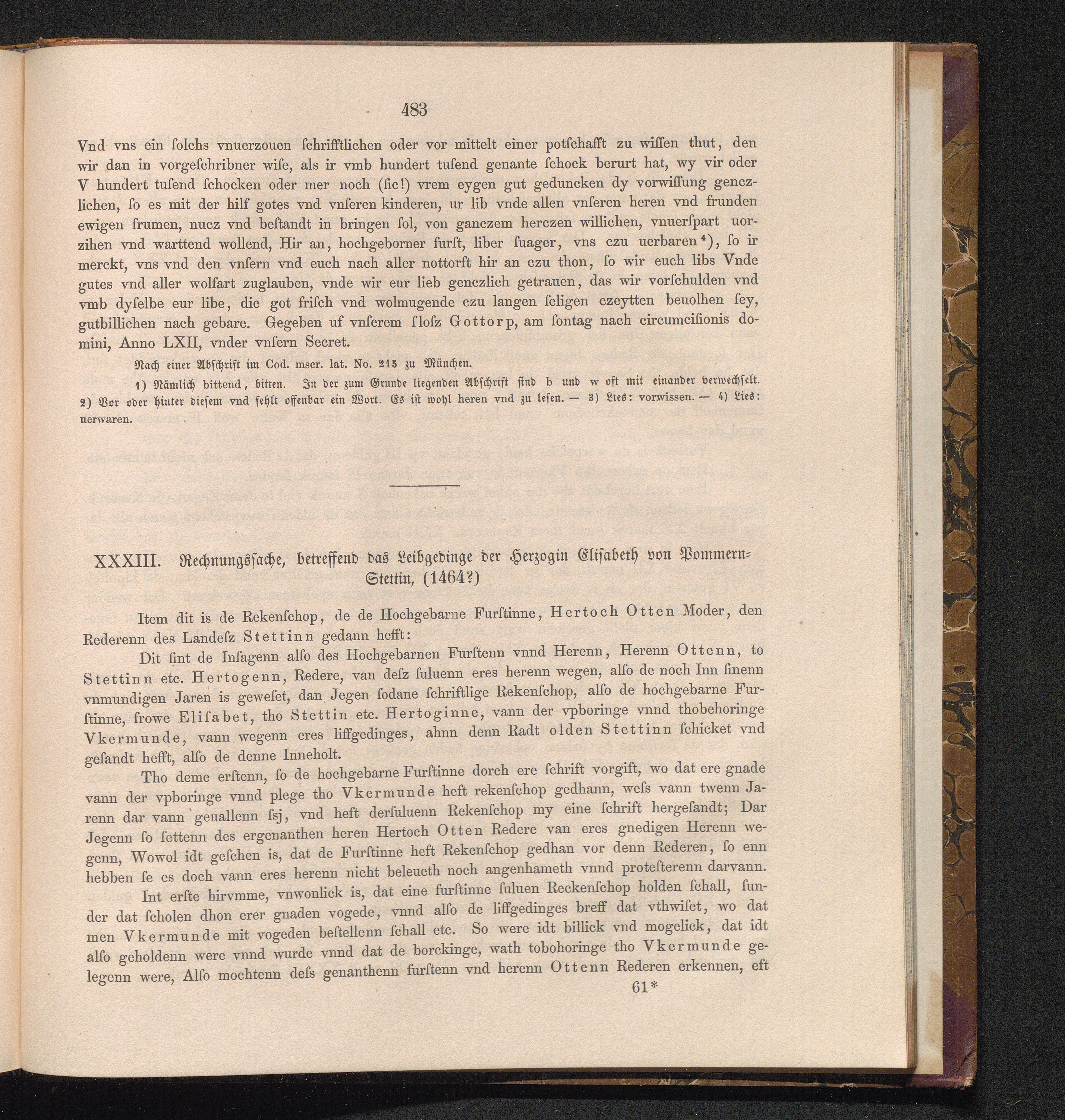 XXXIII. Rechnungssache, betreffend das Leibgedinge der Herzogin Elisabeth von Pommern-Stettin,[...]