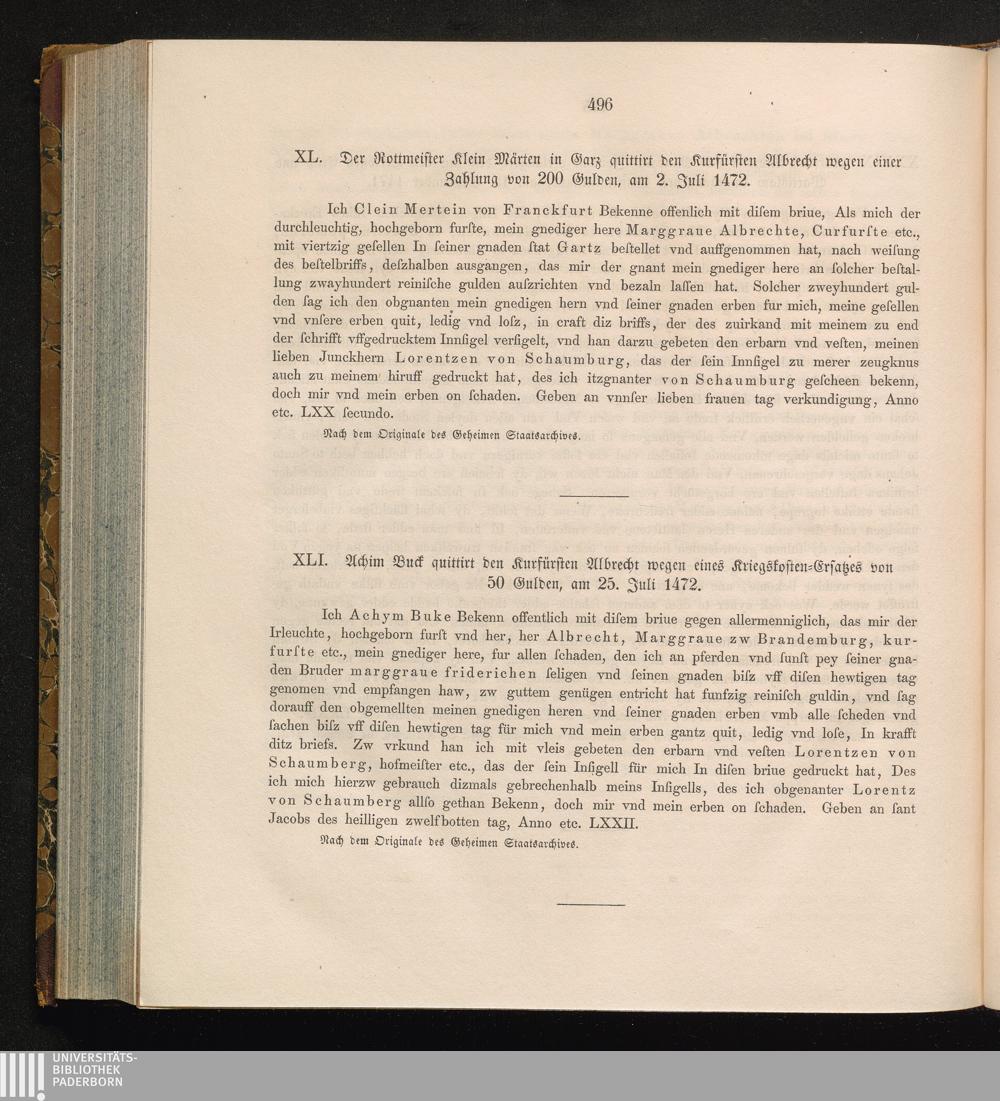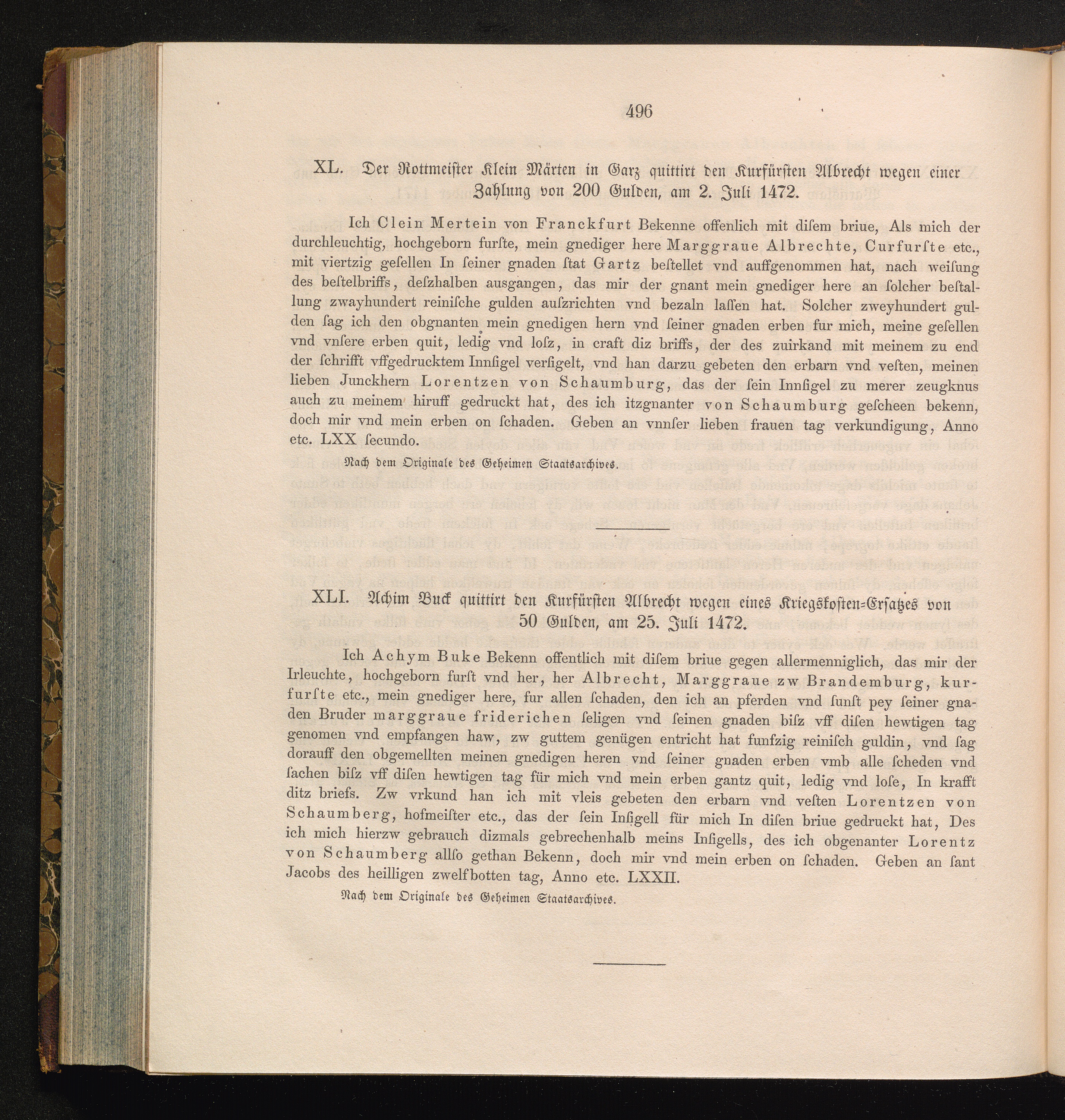 XLI. Achim Buck quittirt den Kurfürsten Albrecht wegen eines Kriegskosten-Ersatzes[...]