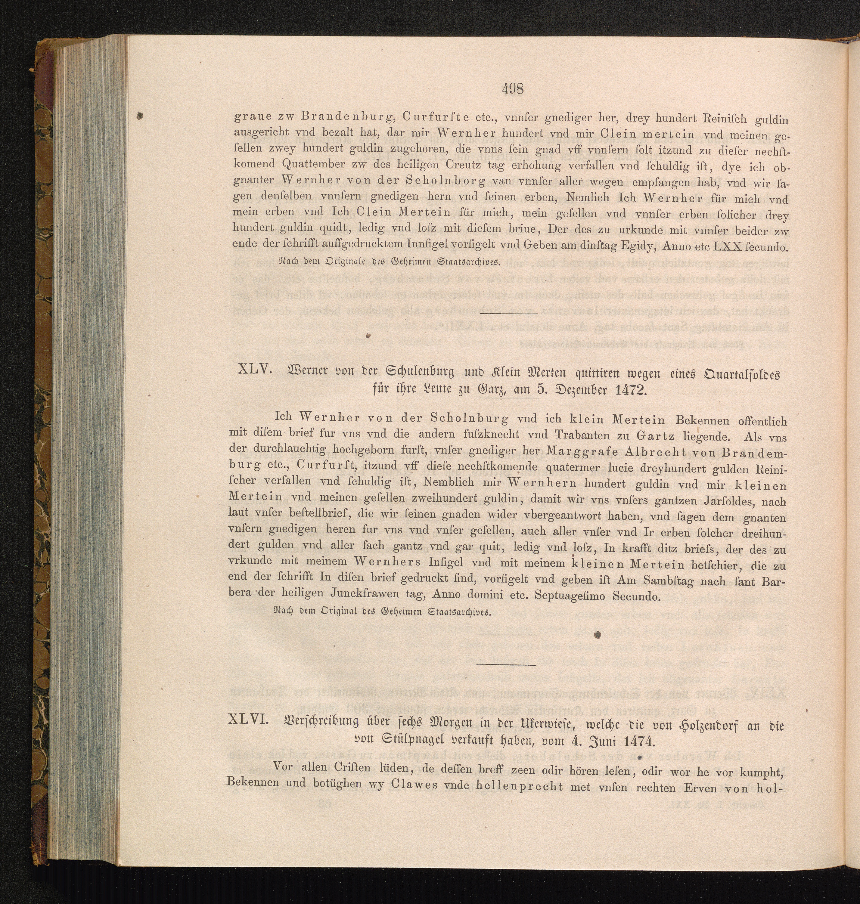 XLVI. Verschreibung über sechs Morgen in der Ukerwiese, welche die von Holzendorf[...]