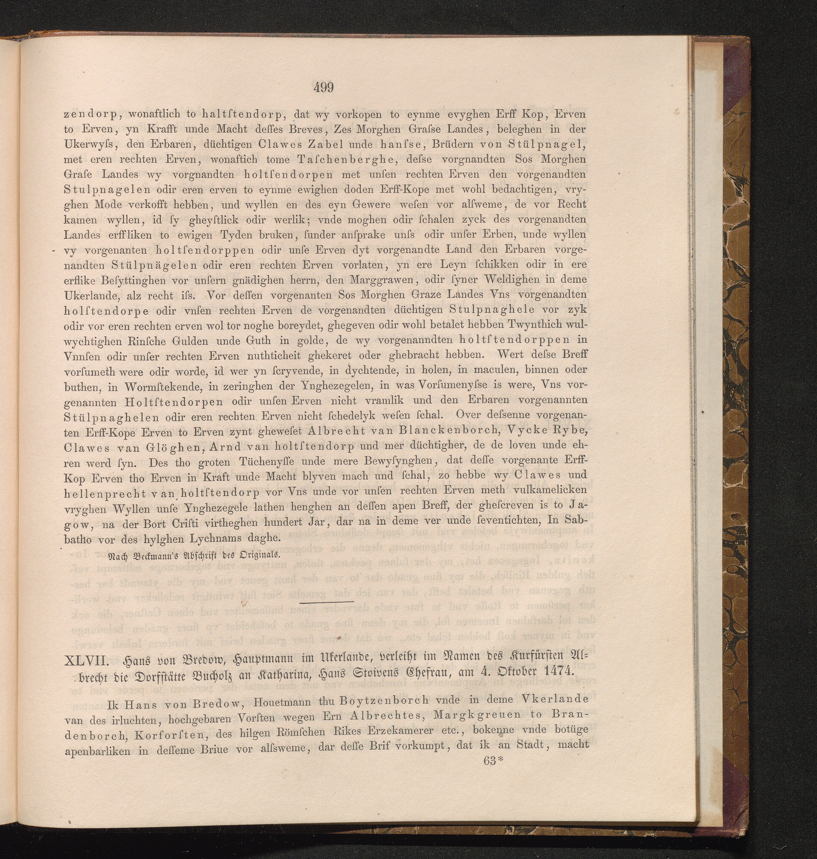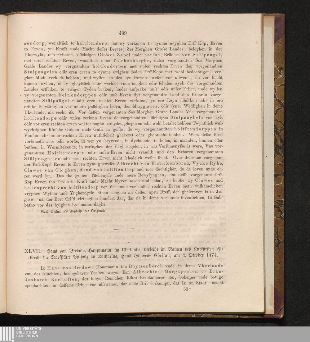 XLVII. Hans von Bredow, Hauptmann im Ukerlande, verleiht im Namen des Kurfürsten[...]