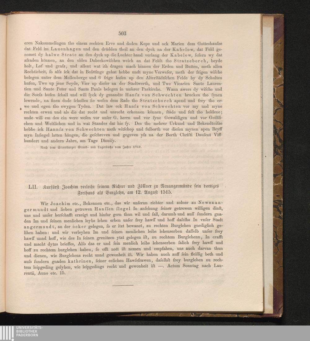 LII. Kurfürst Joachim verleiht seinem Richter und Zöllner zu Neuangermünde sein dortiges[...]
