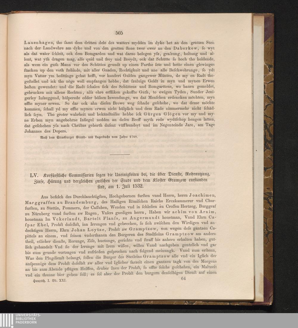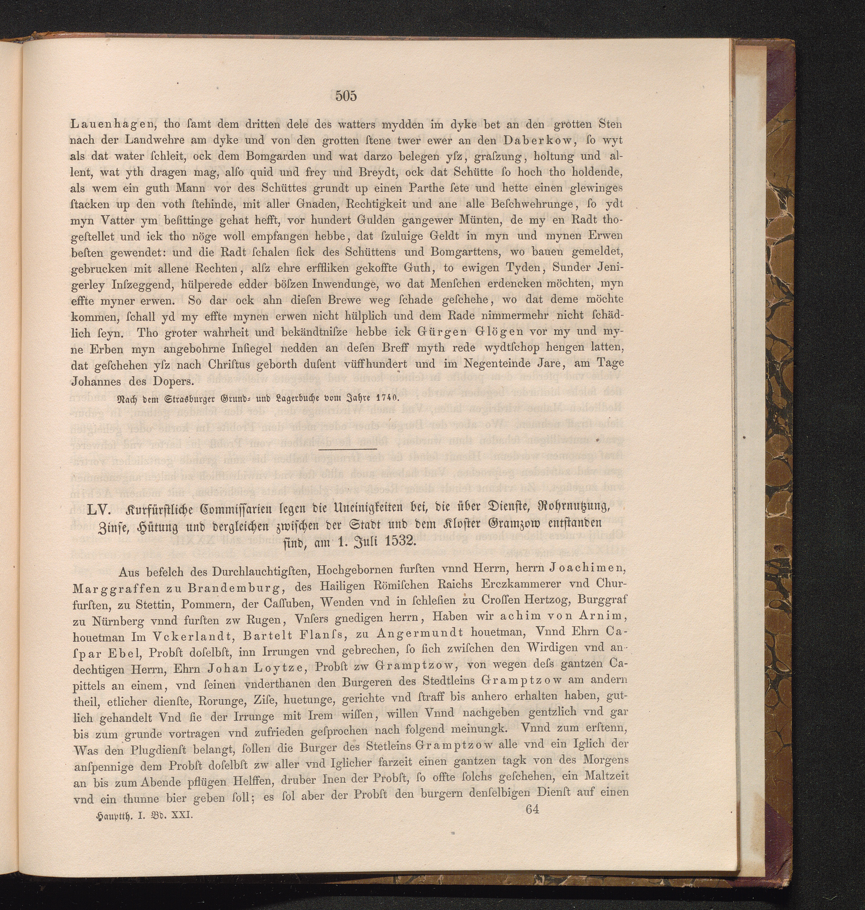 LV. Kurfürstliche Commissarien legen die Uneinigkeiten bei, die über Dienste, Rohrnutzung,[...]