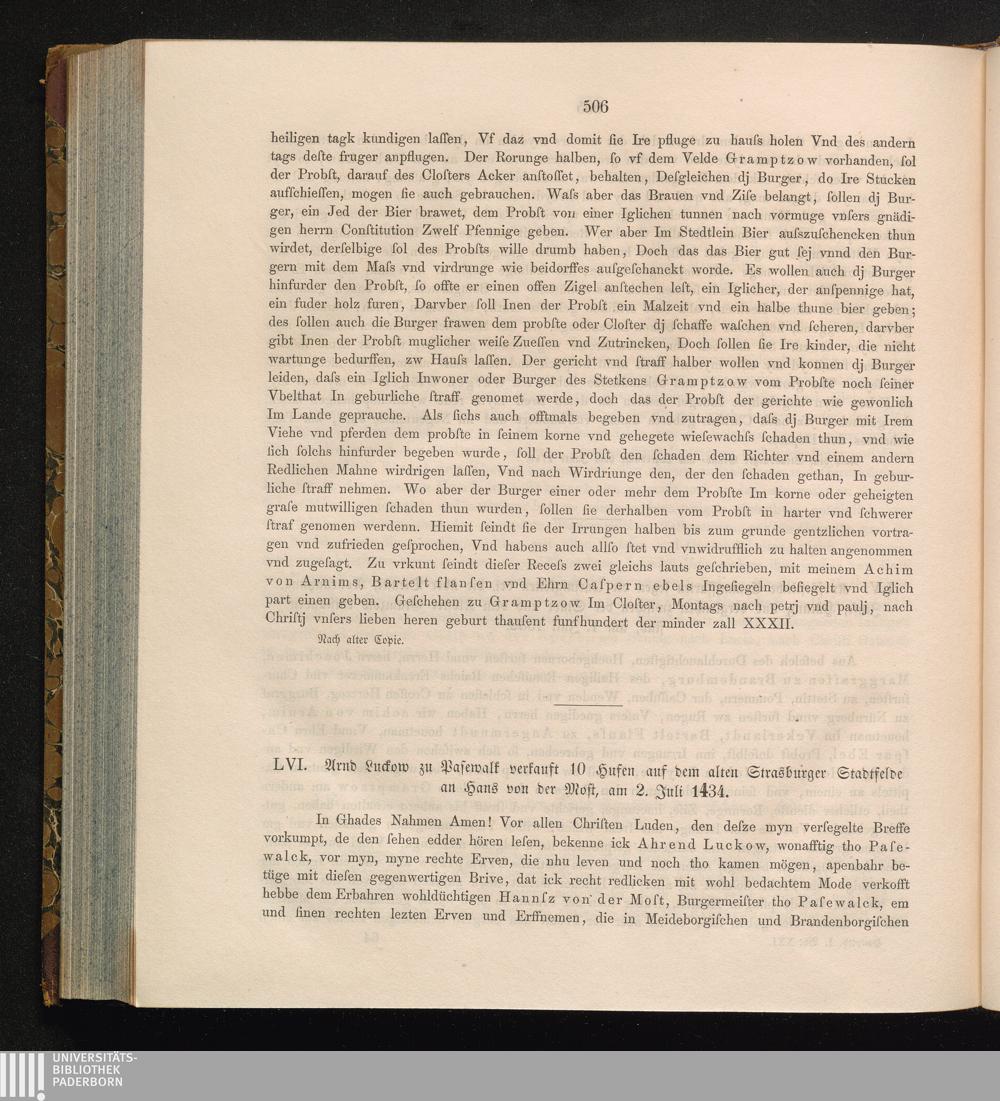 LVI. Arnd Luckow zu Pasewalk verkauft 10 Hufen auf dem alten Strasburger Stadtfelde[...]