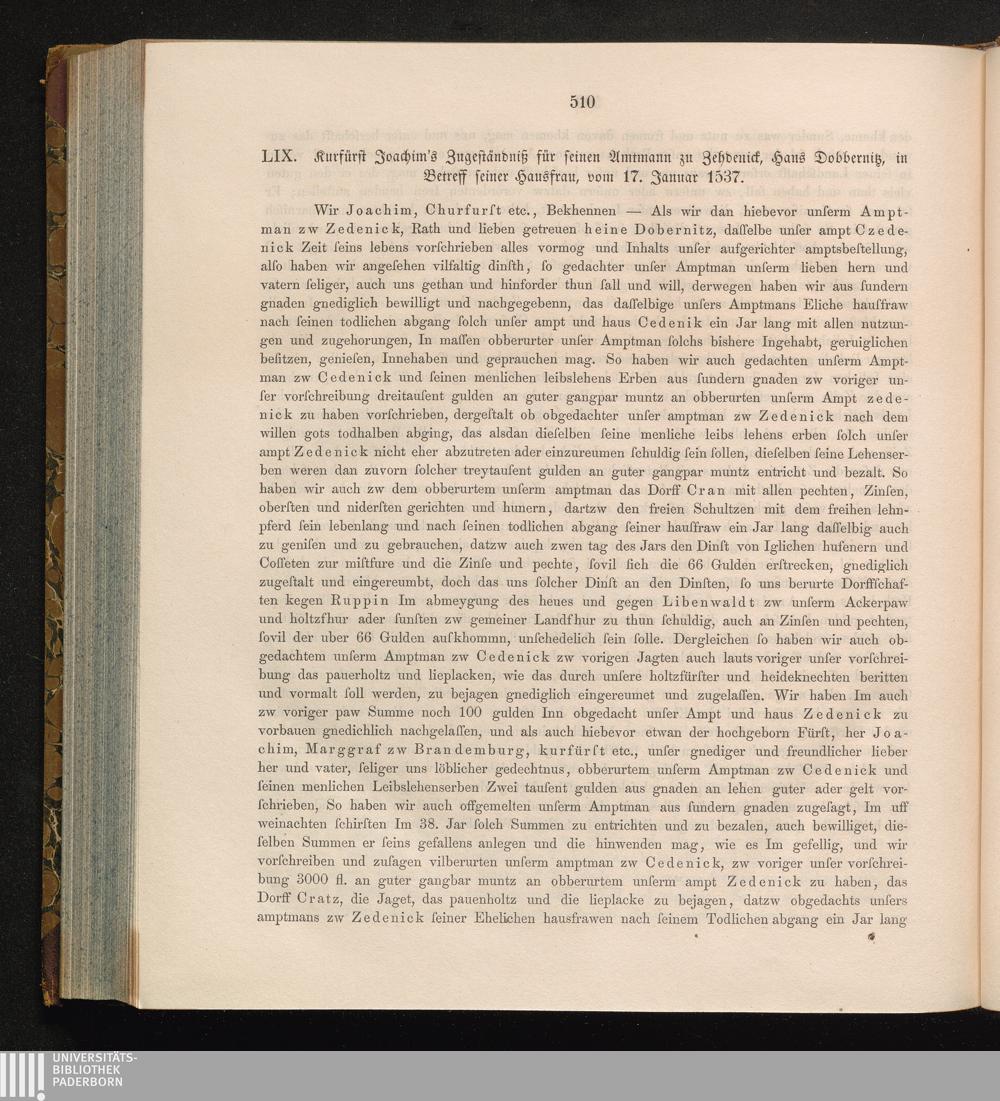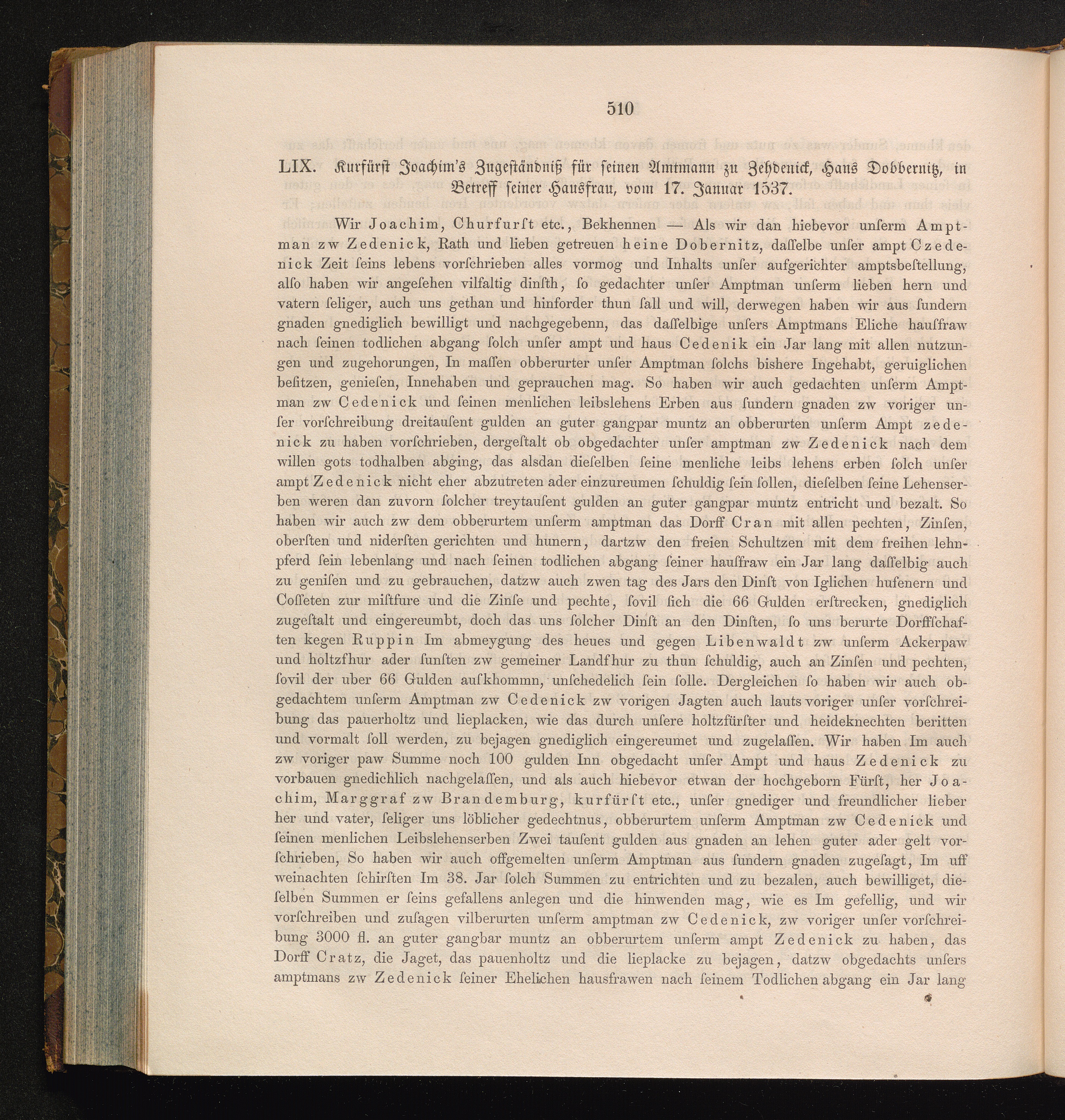 LIX. Kurfürst Joachim’s Zugeständniß für seinen Amtmann zu Zehdenick, Hans Dobbernitz,[...]