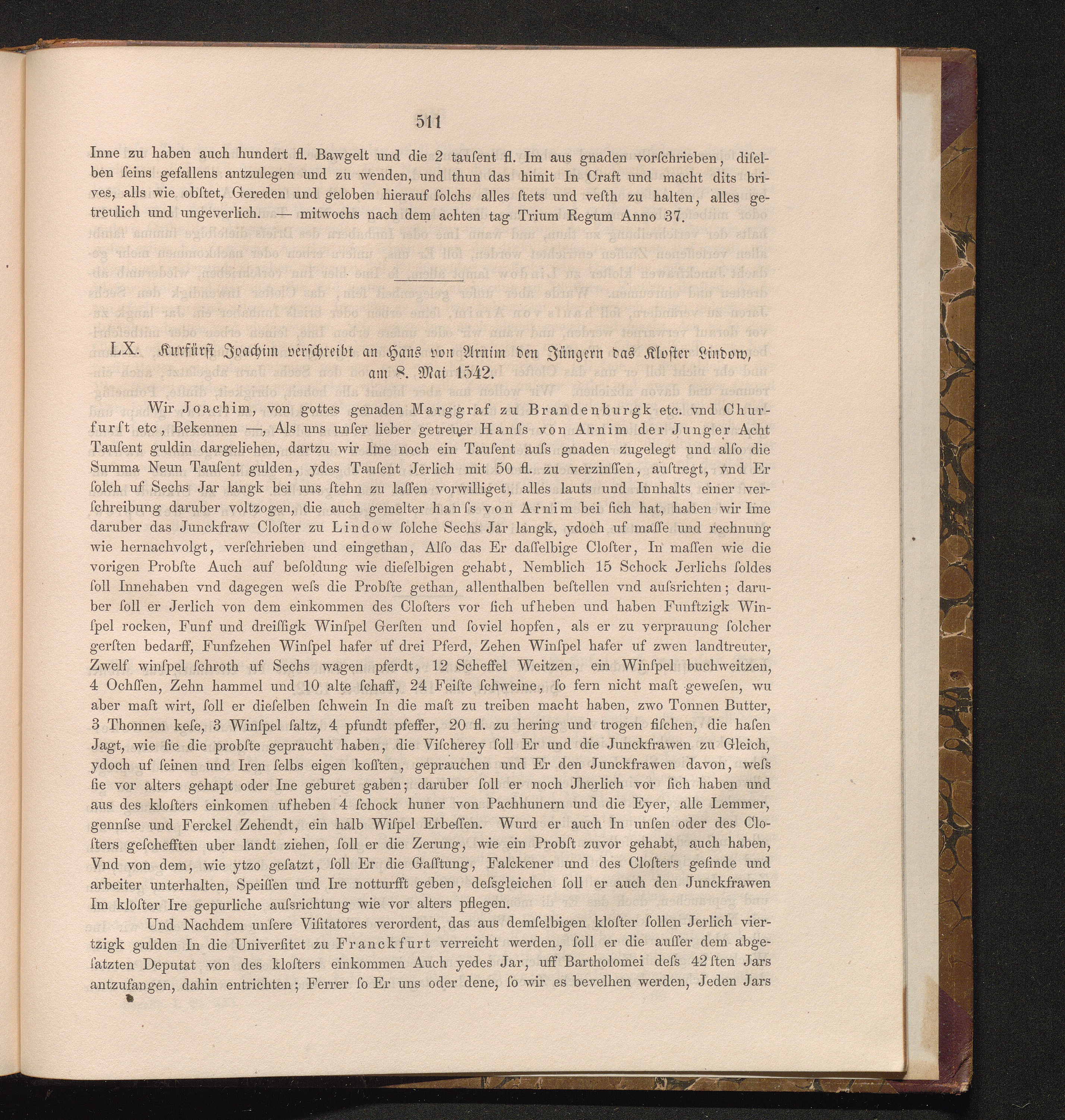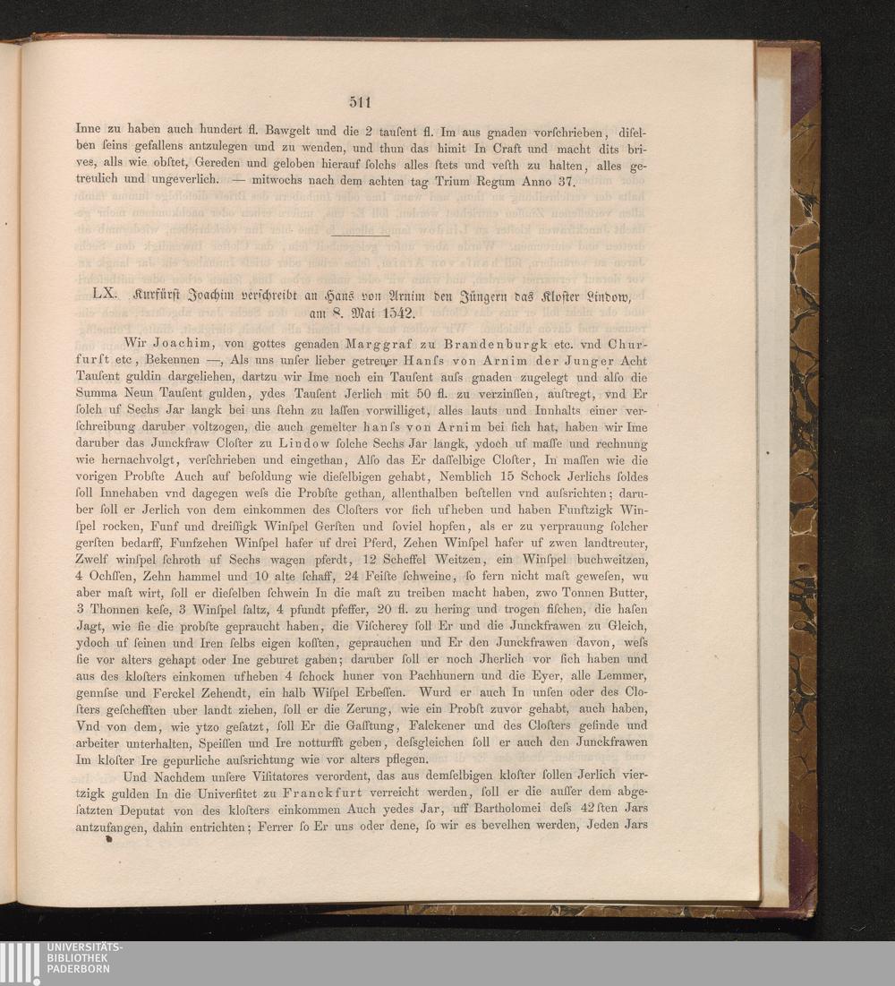 LX. Kurfürst Joachim verschreibt an Hans von Arnim den Jüngern das Kloster Lindow,[...]