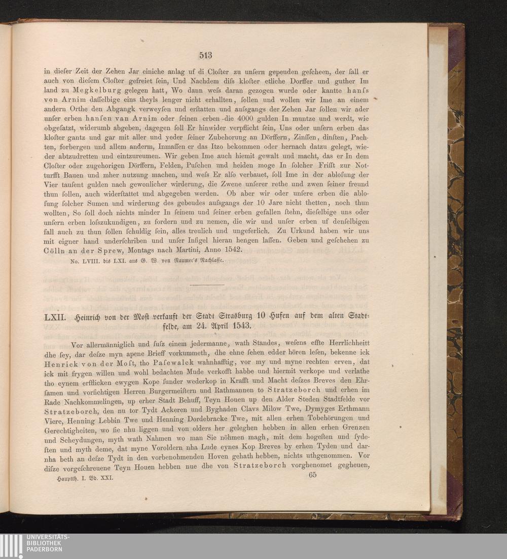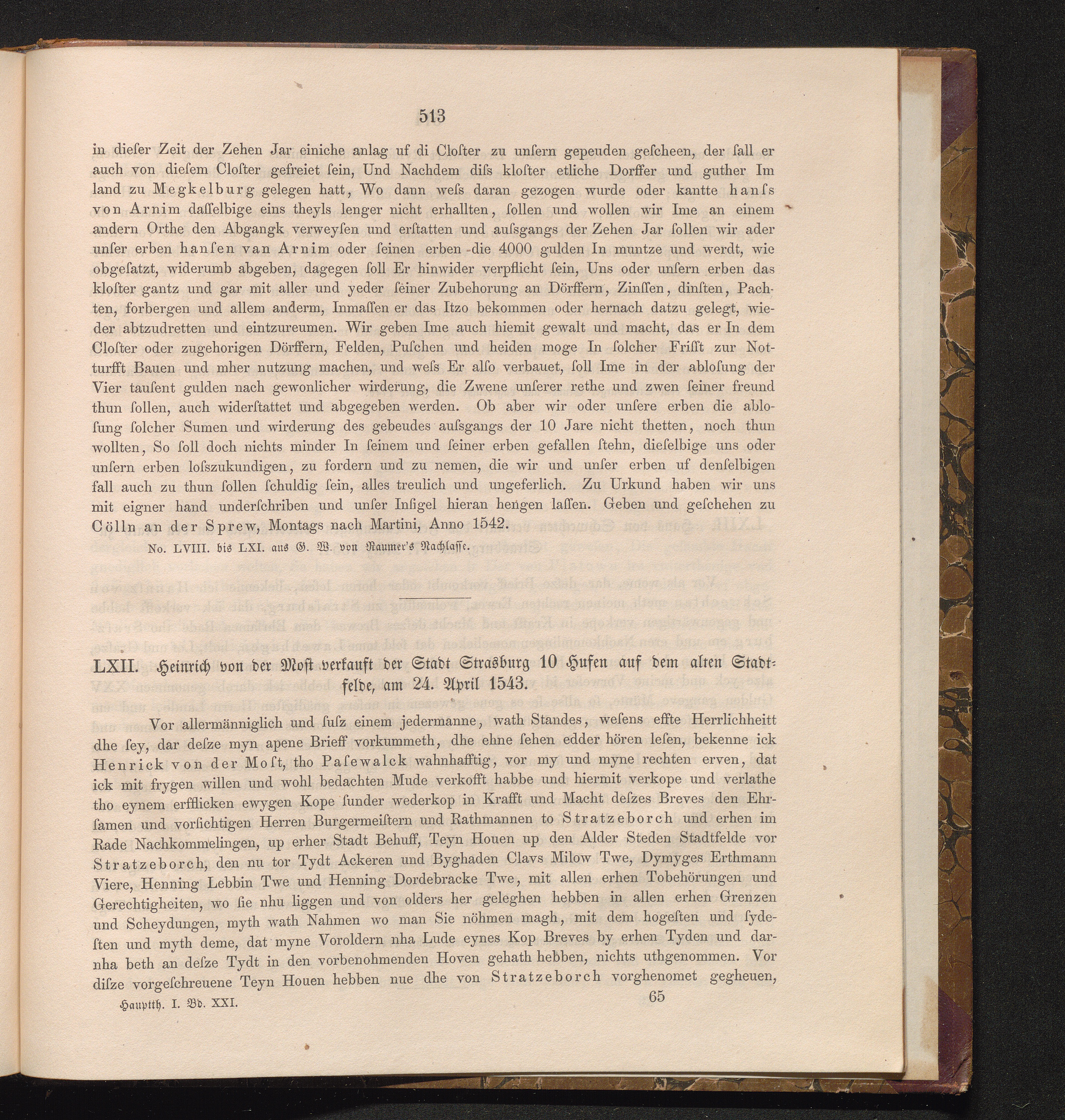 LXII. Heinrich von der Most verkauft der Stadt Strasburg 10 Hufen auf dem alten Stadtfelde,[...]