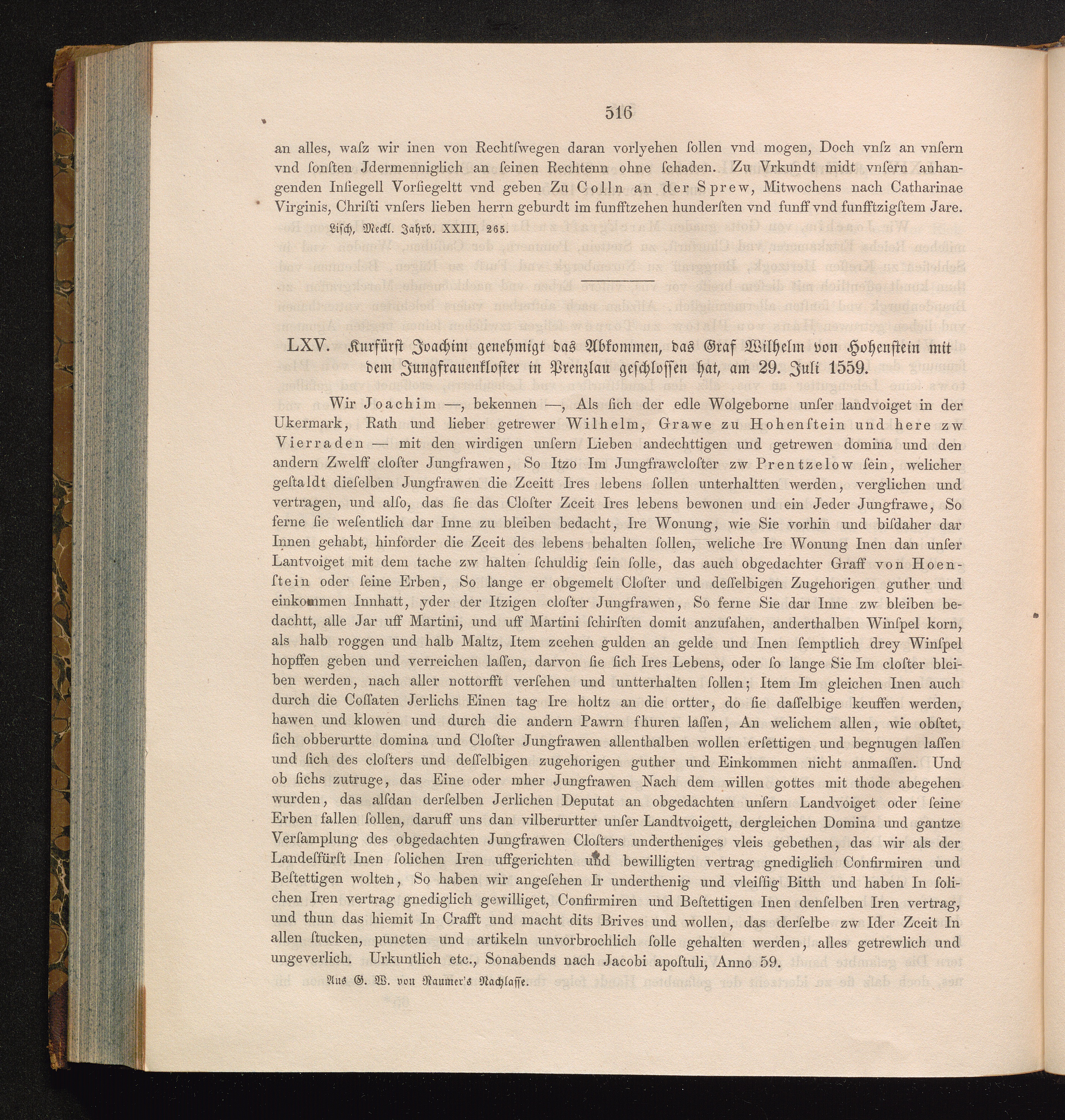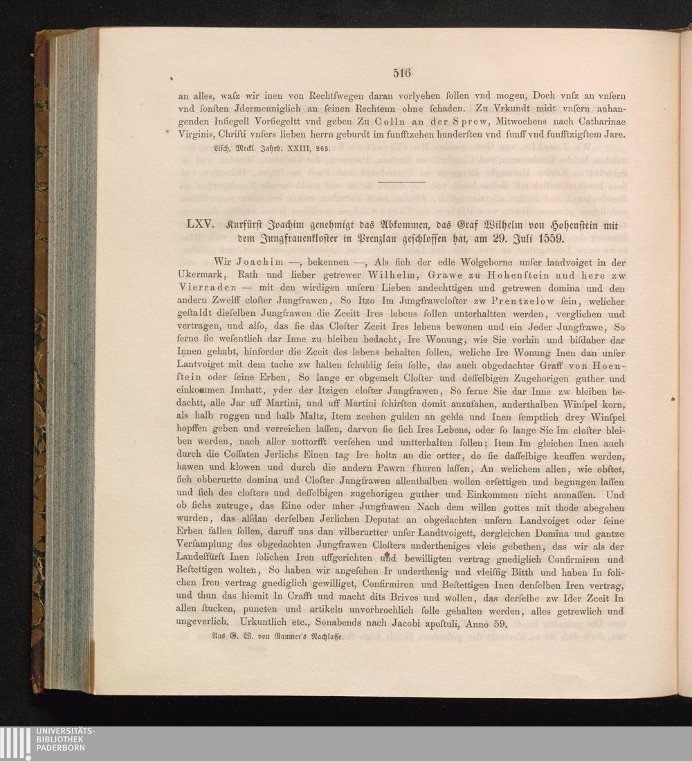 LXV. Kurfürst Joachim genehmigt das Abkommen, das Graf Wilhelm von Hohenstein mit[...]