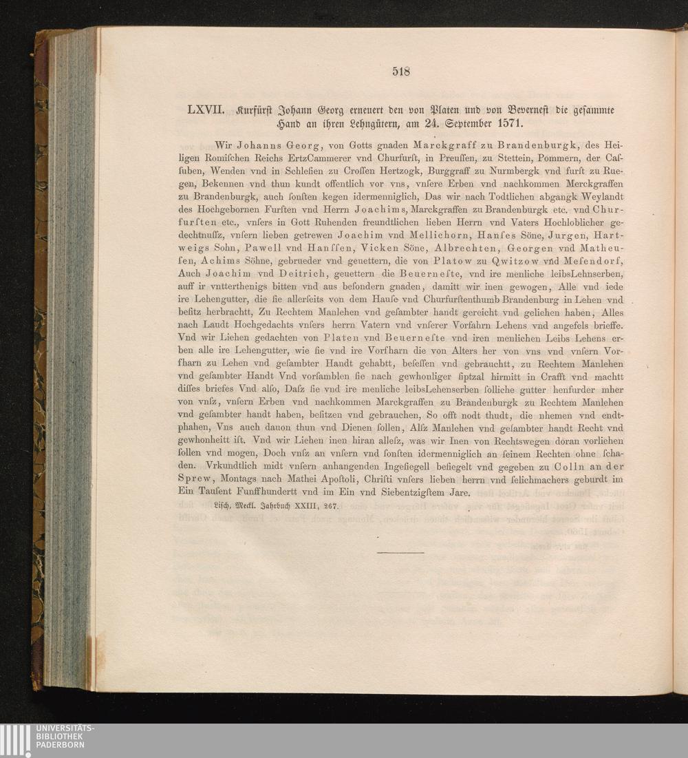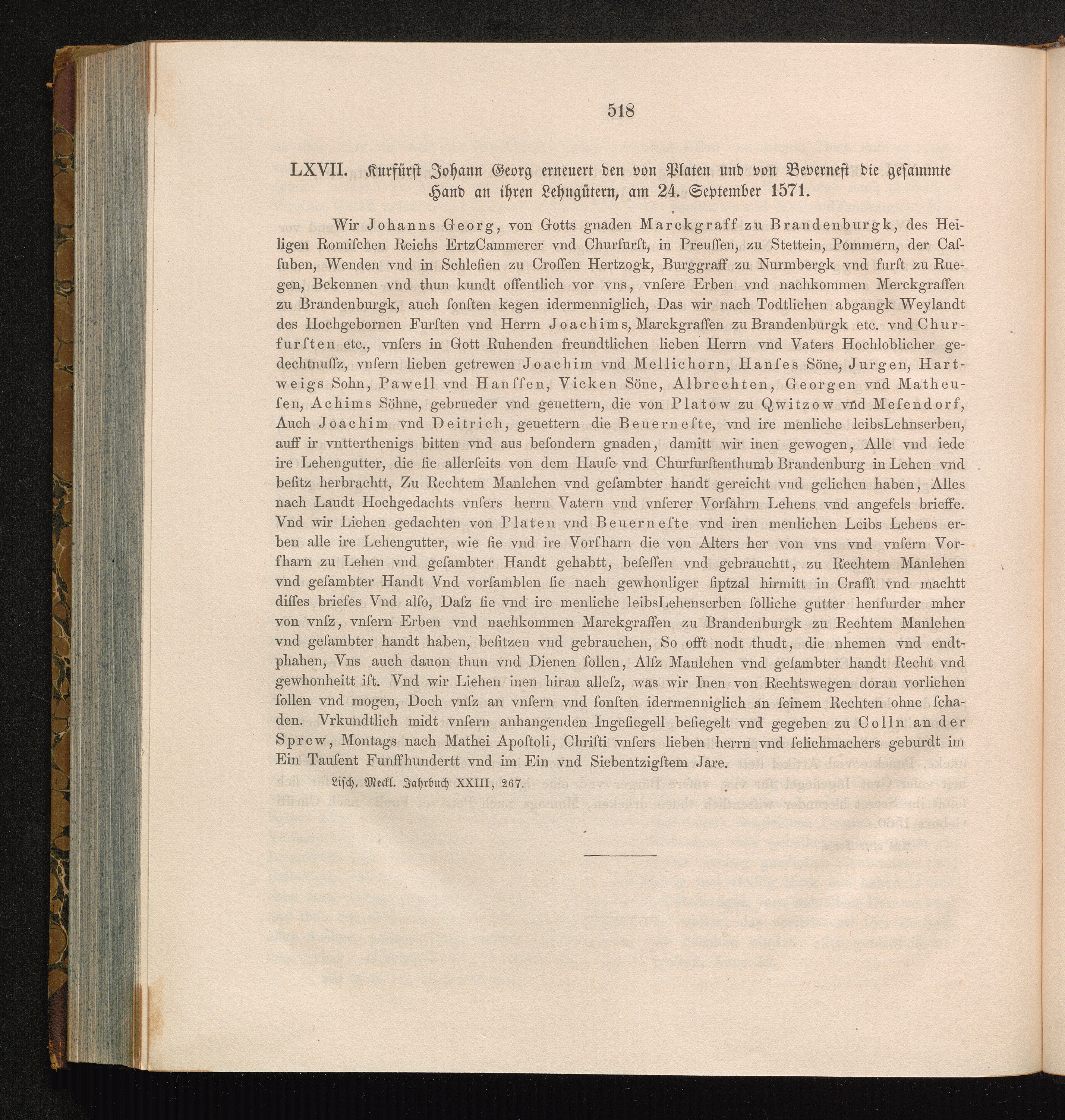 LXVII. Kurfürst Johann Georg erneuert den von Platen und von Bevernest die gesammte[...]