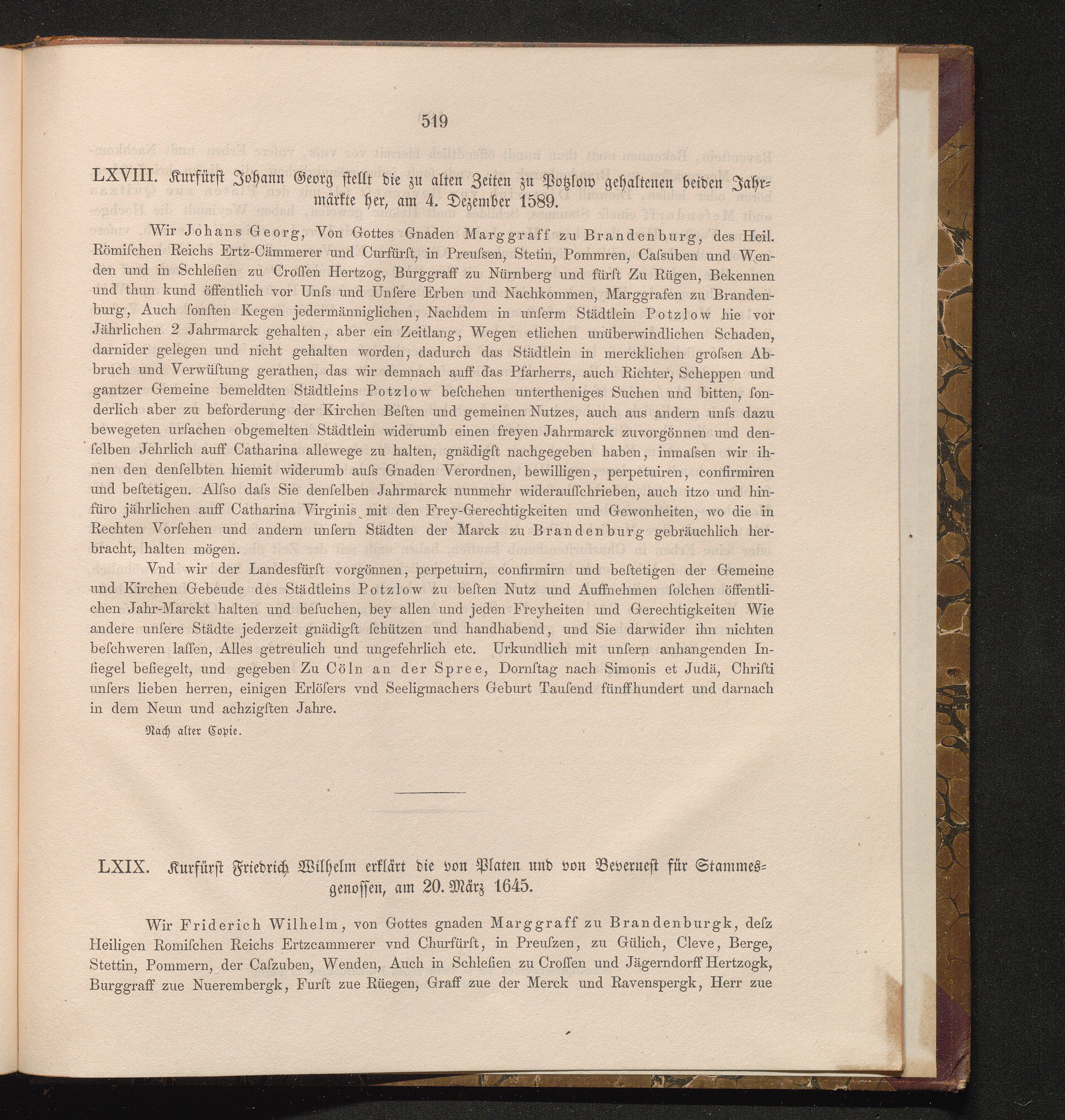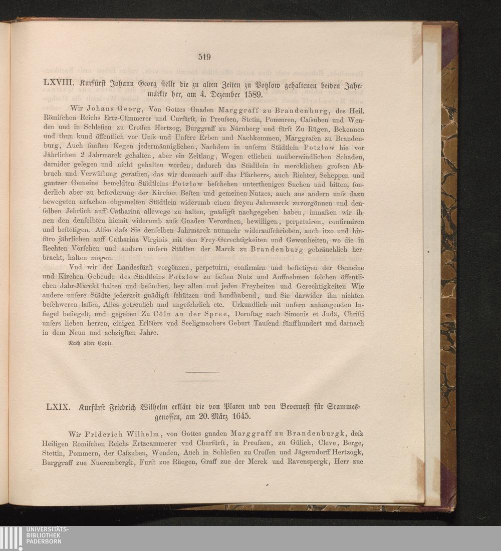 LXIX. Kurfürst Friedrich Wilhelm erklärt die von Platen und von Bevernest für Stammesgenossen,[...]