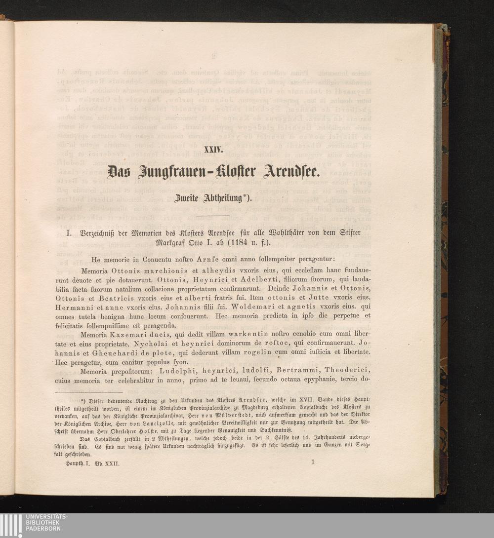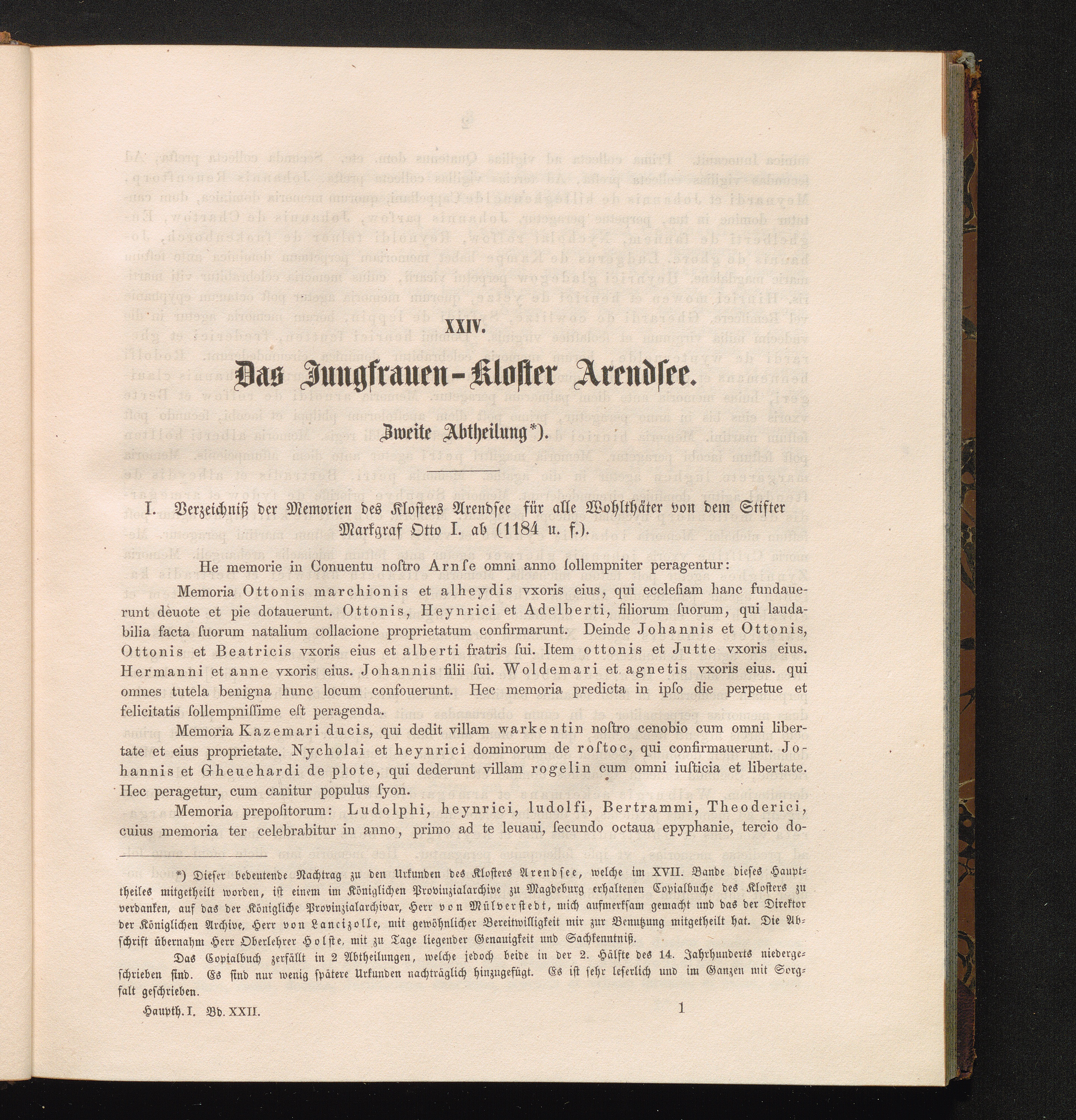 I. Verzeichniß der Memoiren des Klosters Arendsee für alle Wohlthäter von dem Stifter[...]