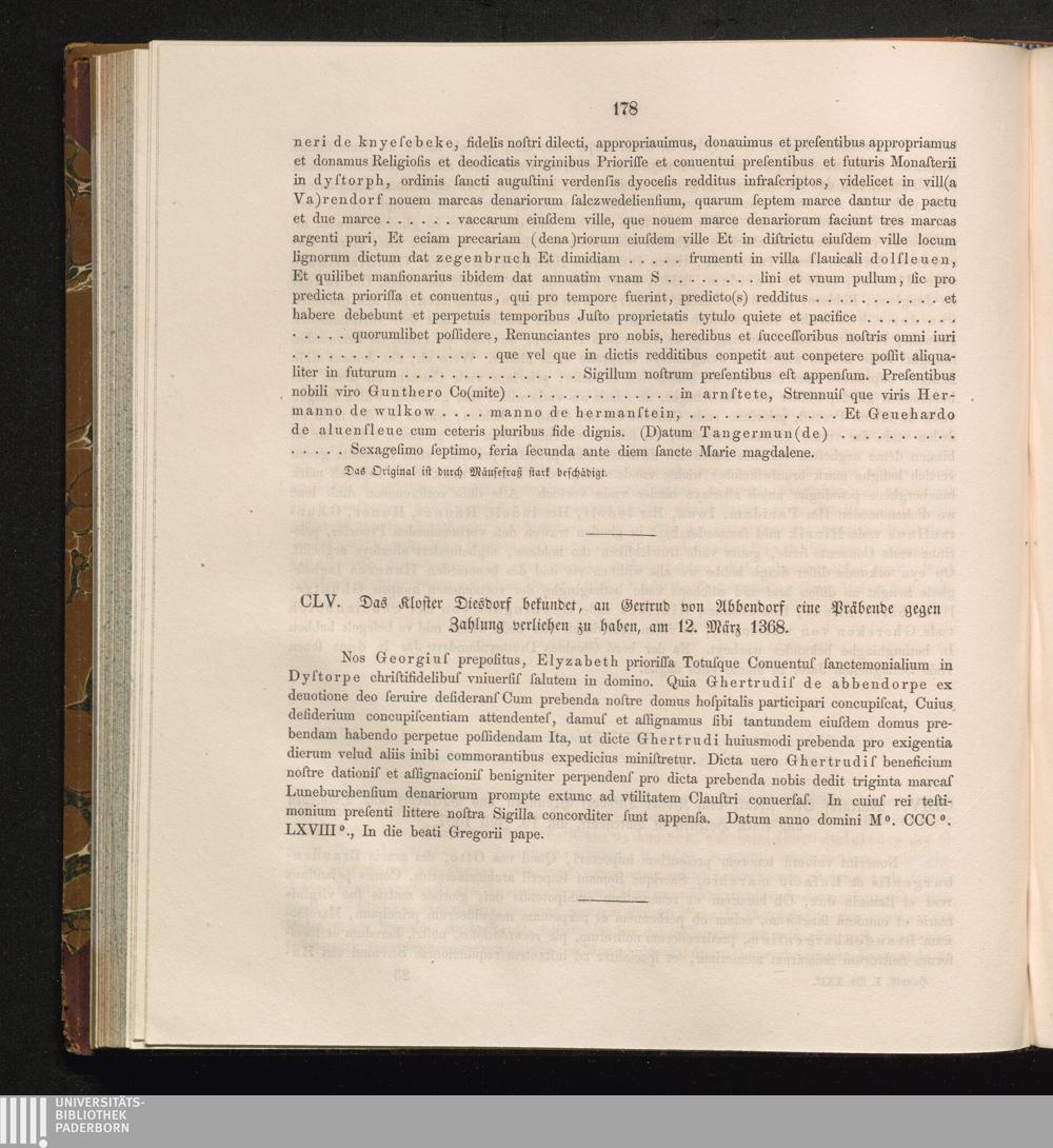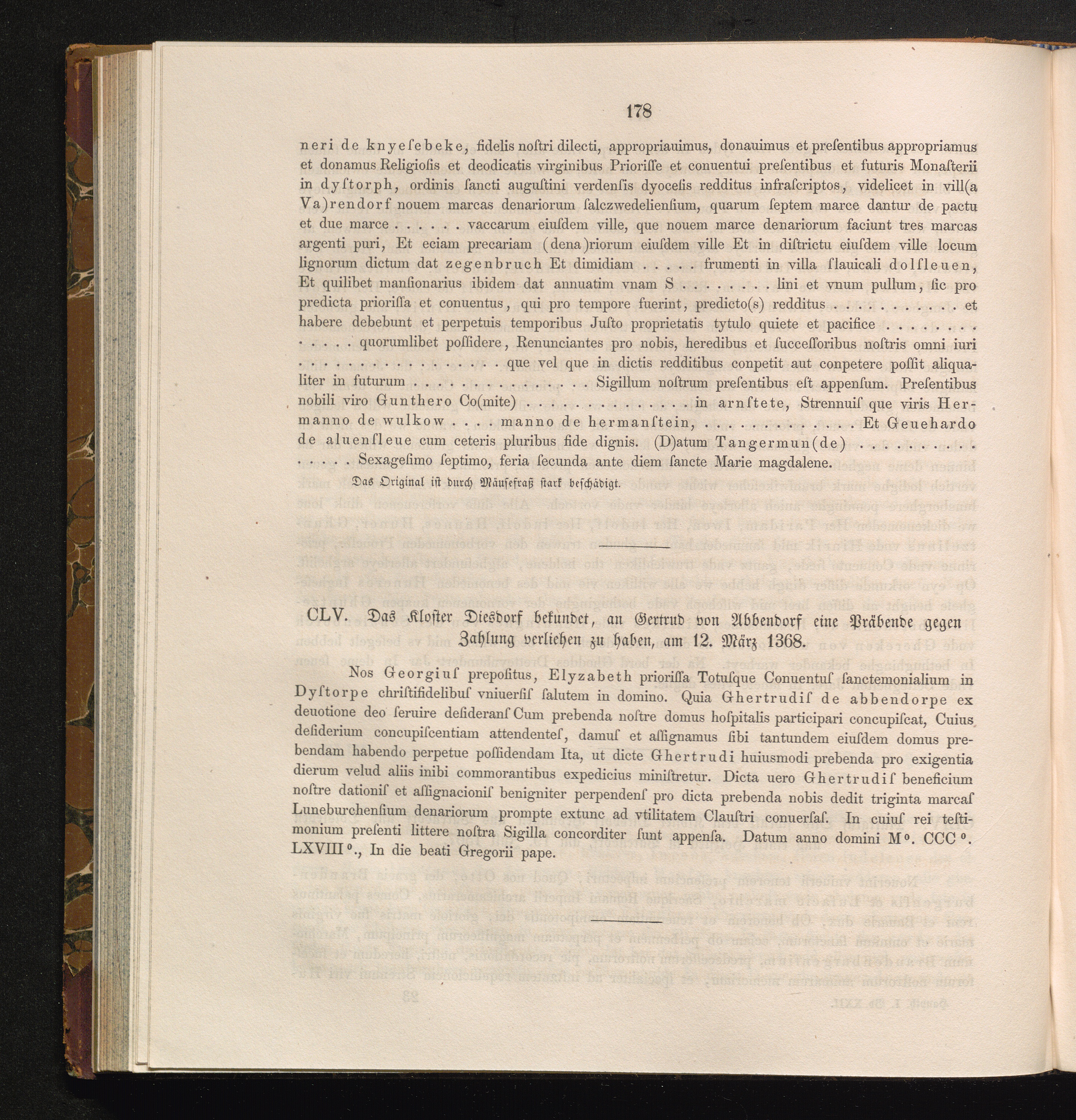 CLV. Das Kloster Diesdorf bekundet, an Gertrud von Abbendorf eine Präbende gegen[...]