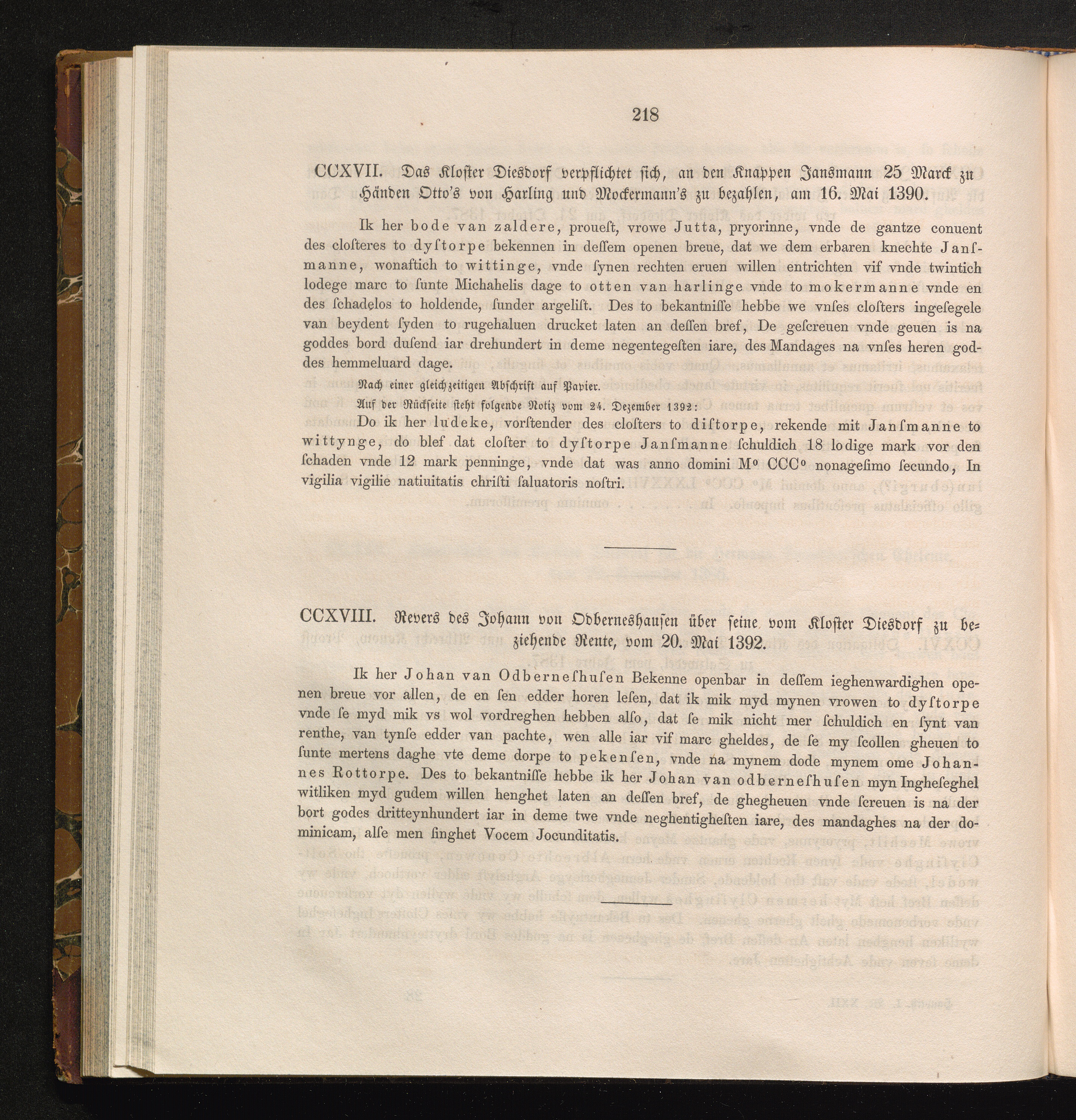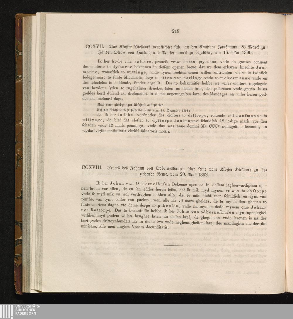 CCXVIII. Revers des Johann von Odberneshausen über seine vom Kloster Diesdorf zu[...]