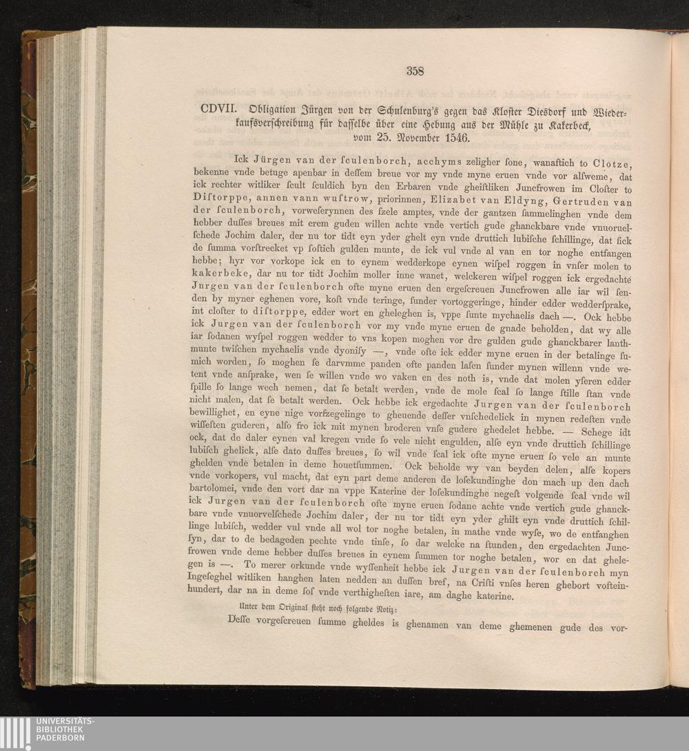 CDVII. Obligation Jürgen von der Schulenburg`s gegen das Kloster Diesdorf und Wiederkaufsverschreibung[...]