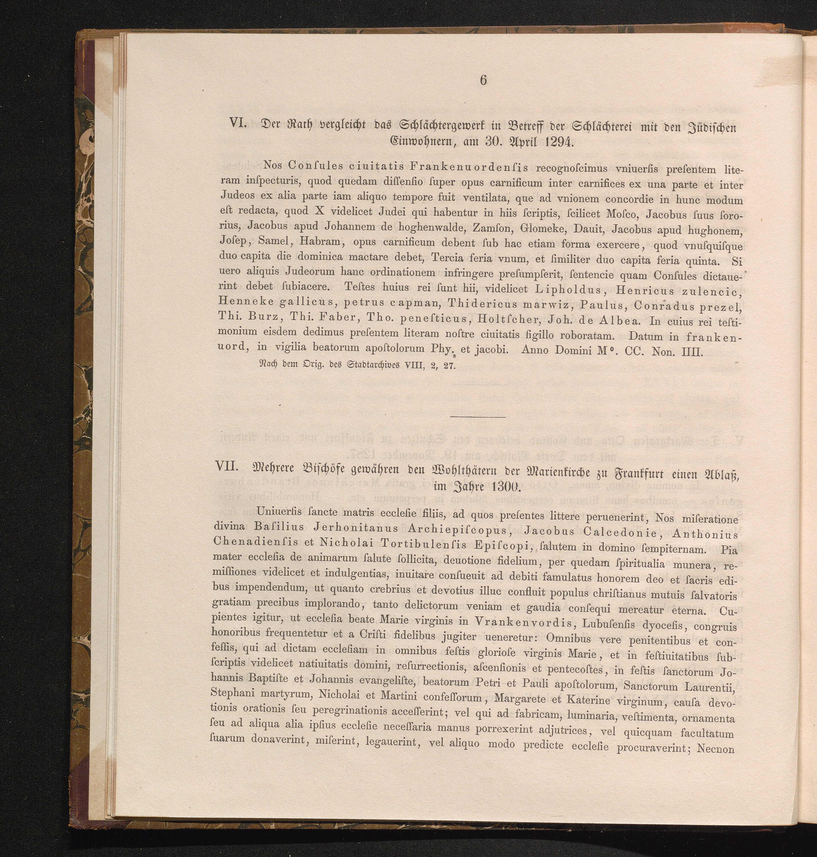 VII. Mehrere Bischöfe gewähren den Wohltätern der Marienkirche zu Frankfurt einen[...]