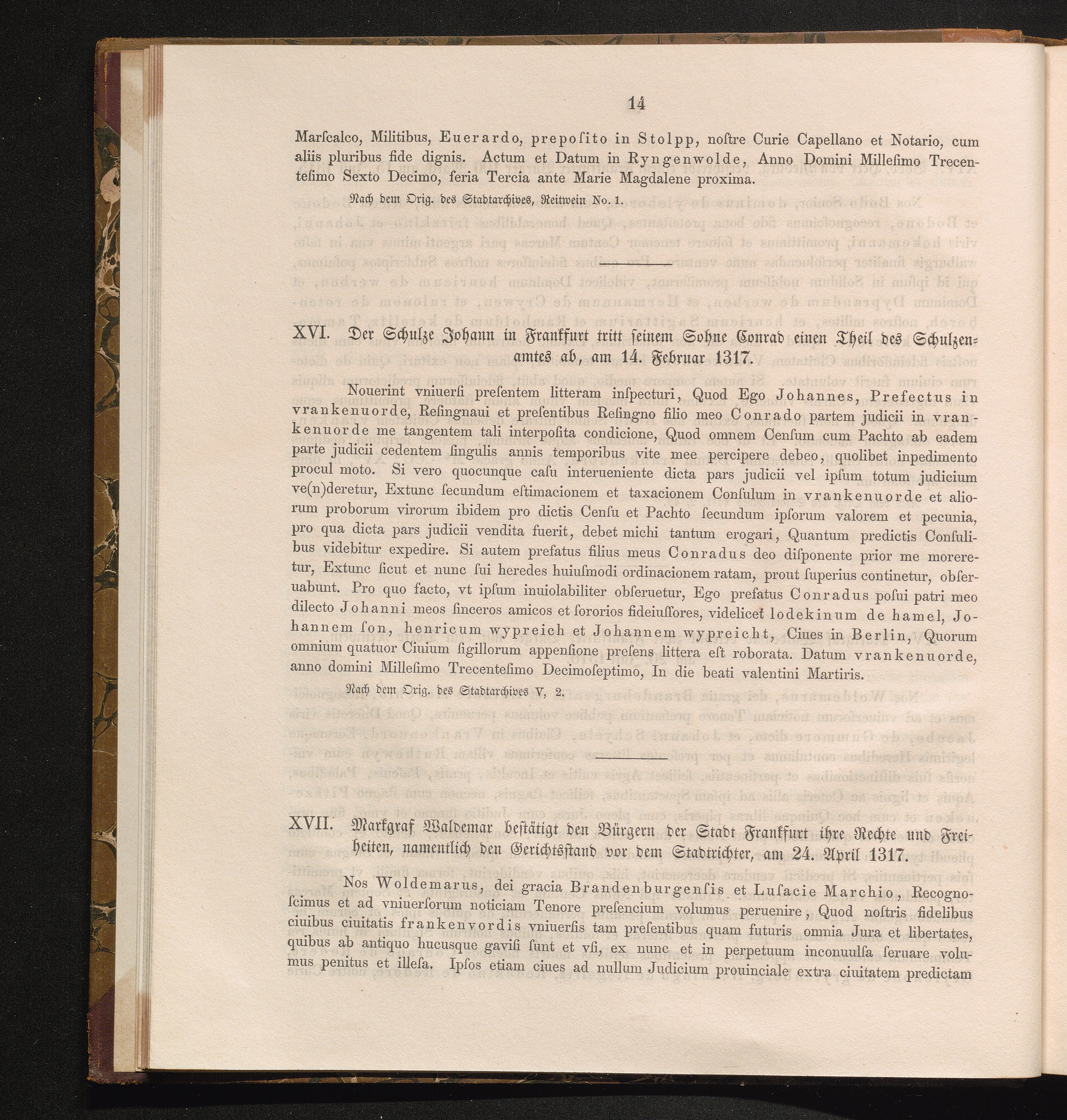 XVII. Markgraf Waldemar bestätigt den Bürgern der Stadt Frankfurt ihre Rechte und[...]