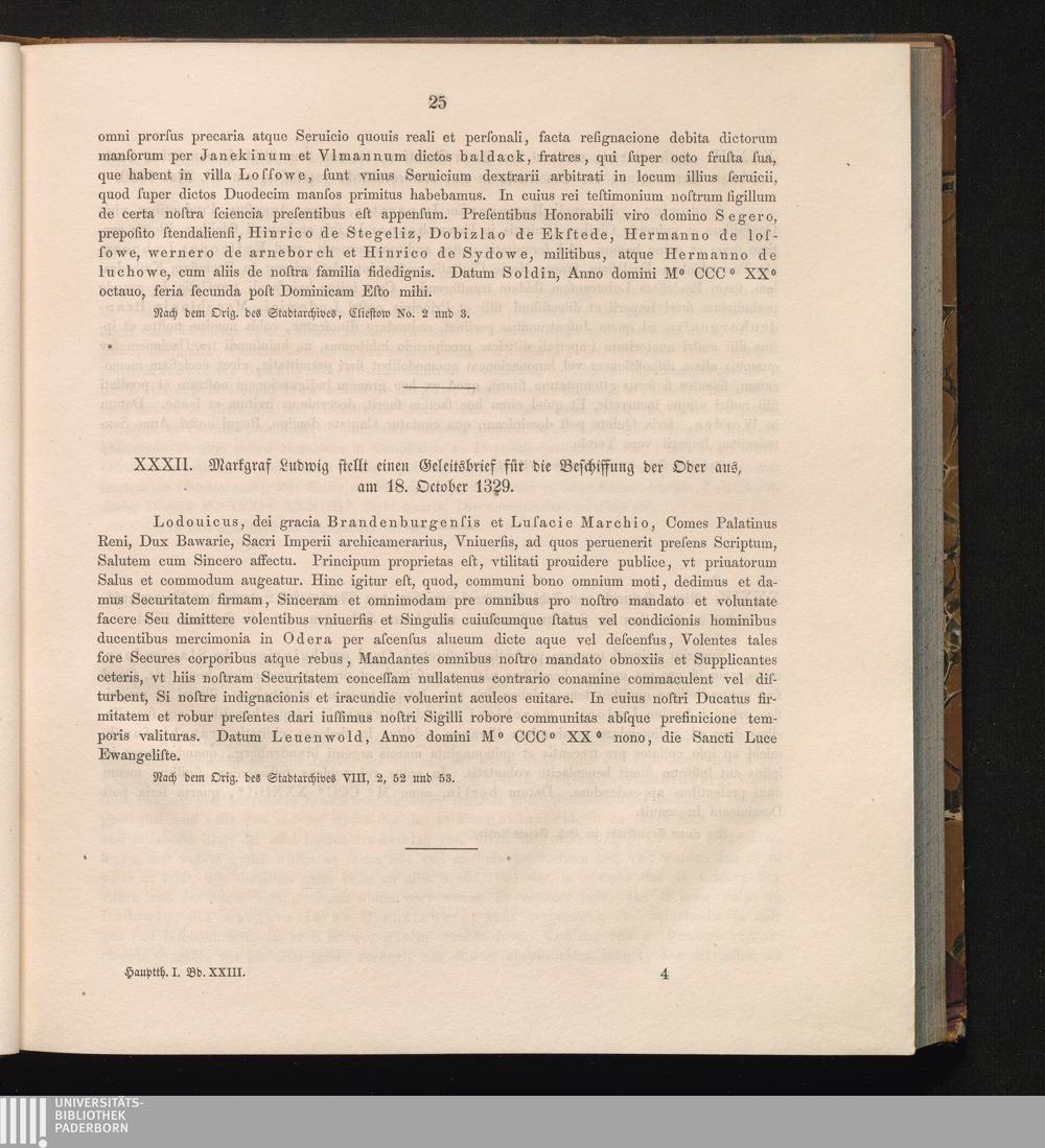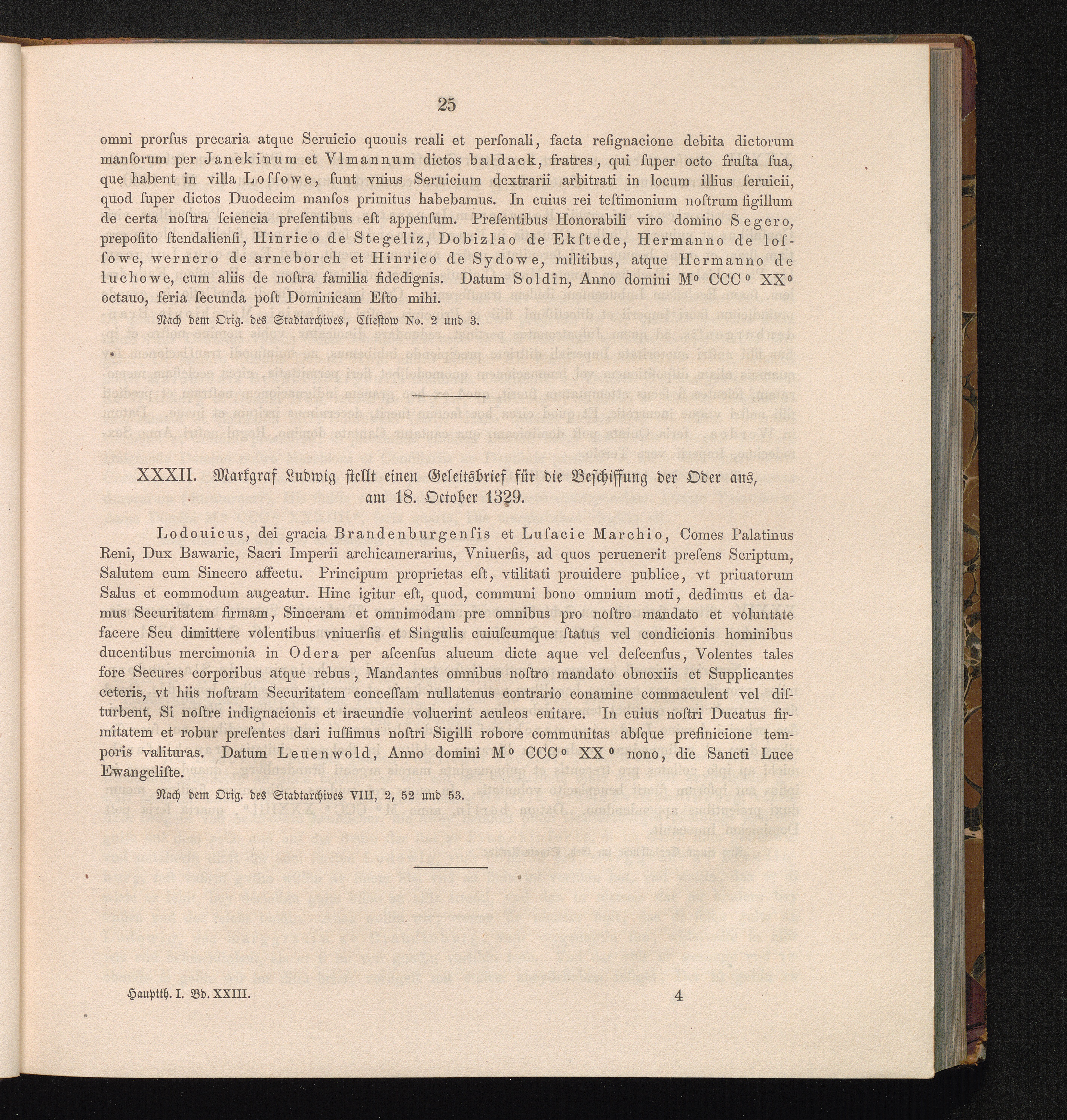 XXXII. Markgraf Ludwig stellt einen Geleitsbrief für die Beschiffung der Oder aus,[...]