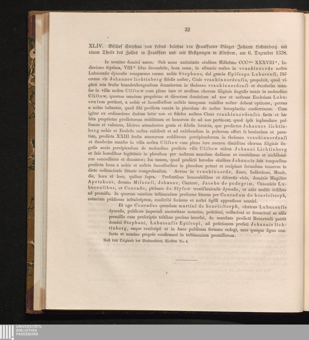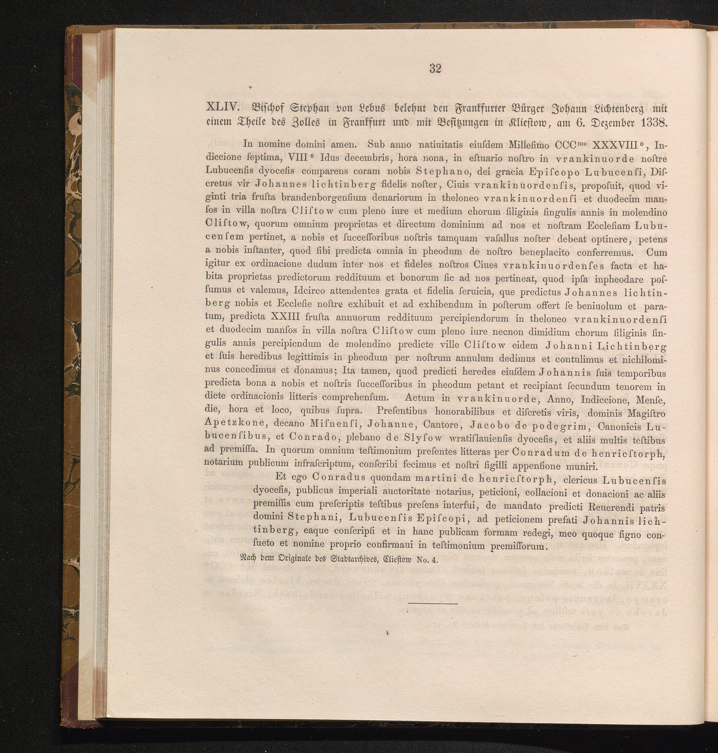 XLIV. Bischof Stephan von Lebus belehnt den Frankfurter Bürger Johann Lichtenberg[...]
