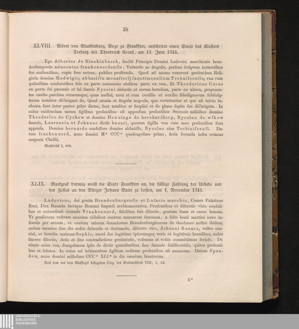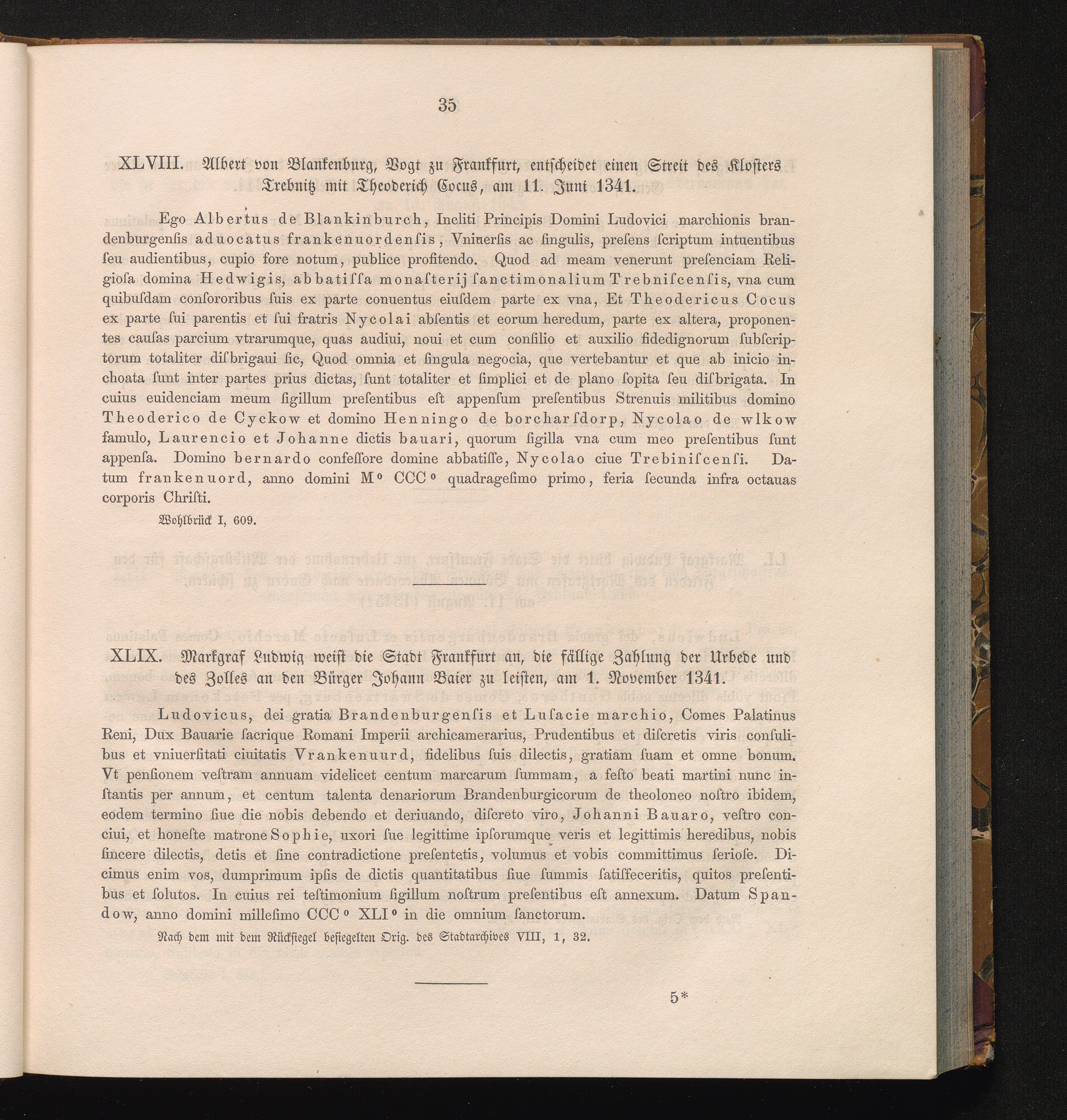 XLIX. Markgraf Ludwig weist die Stadt Frankfurt an, die fällige Zahlung der Urbede[...]