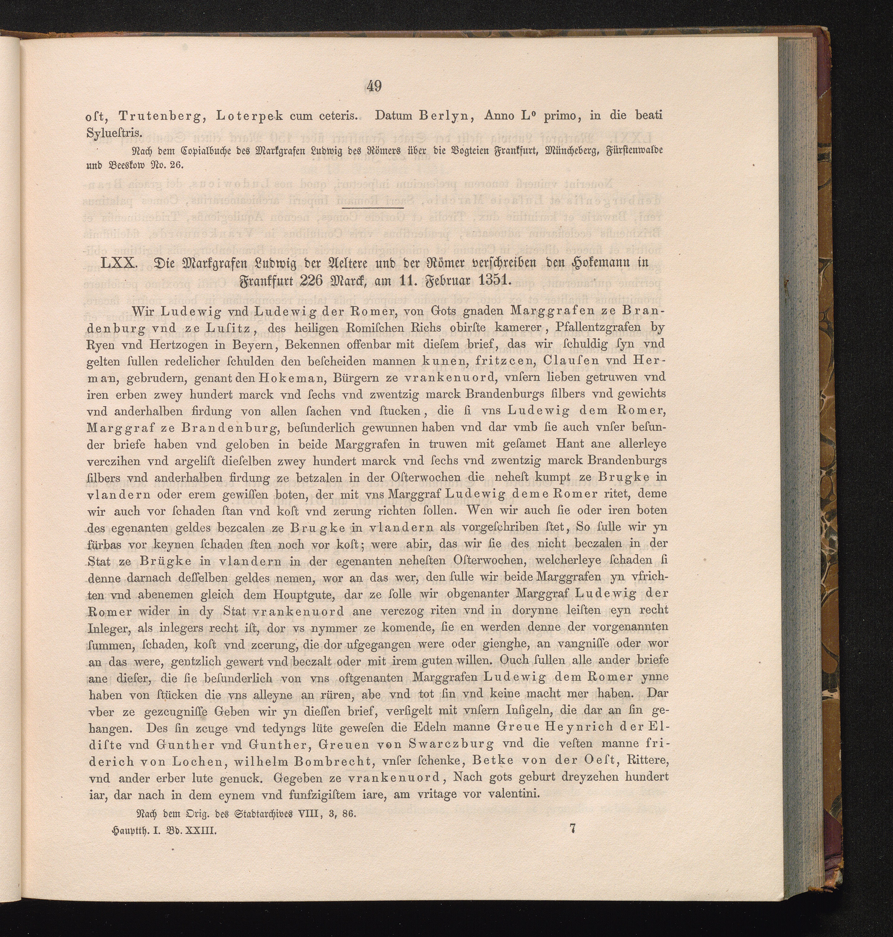 LXX. Die Markgrafen Ludwig der Aeltere und der Römer verschreiben den Hokemann in[...]