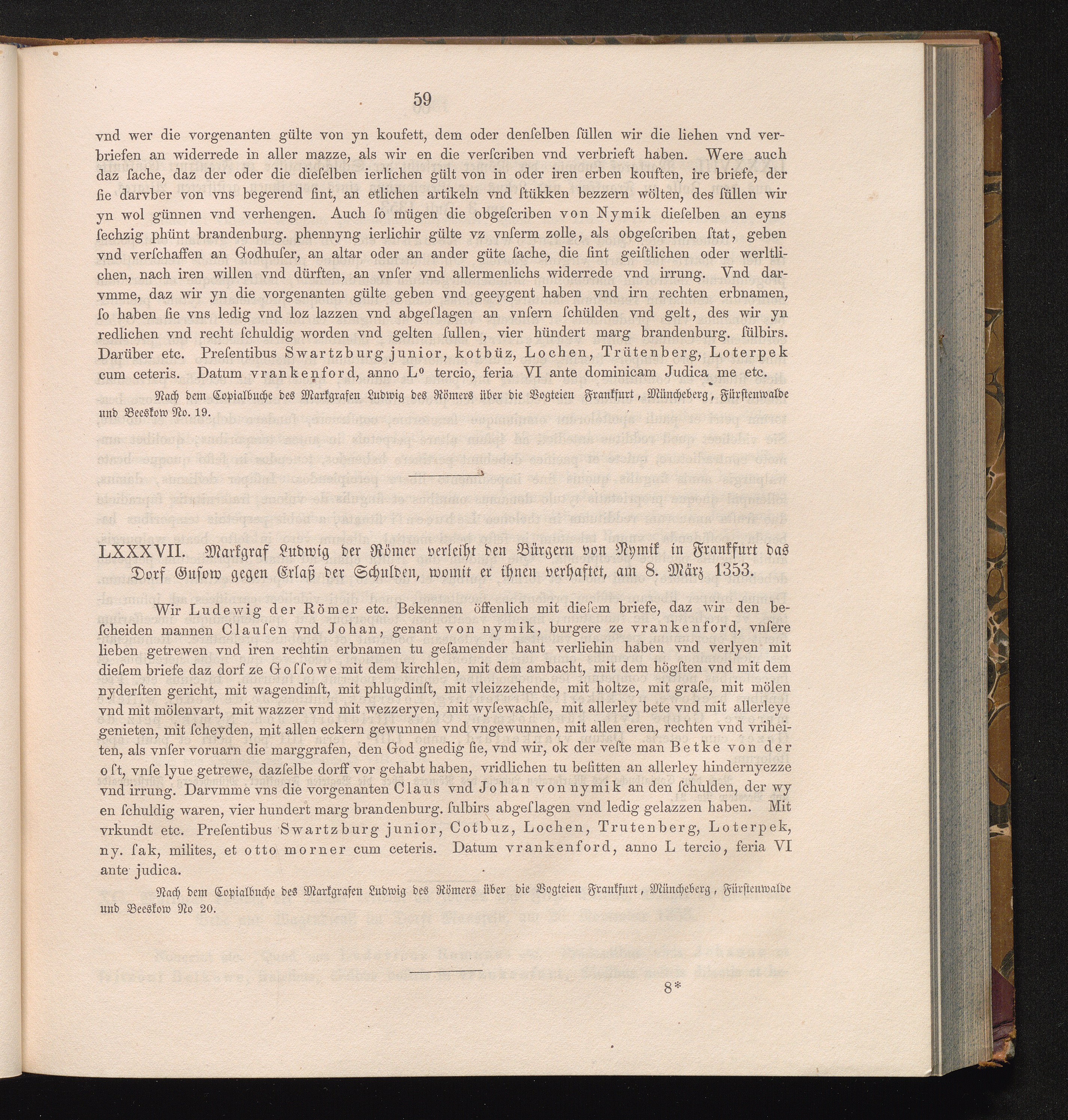 LXXXVII. Markgraf Ludwig der Römer verleiht den Bürgern von Nymik in Frankfurt das[...]