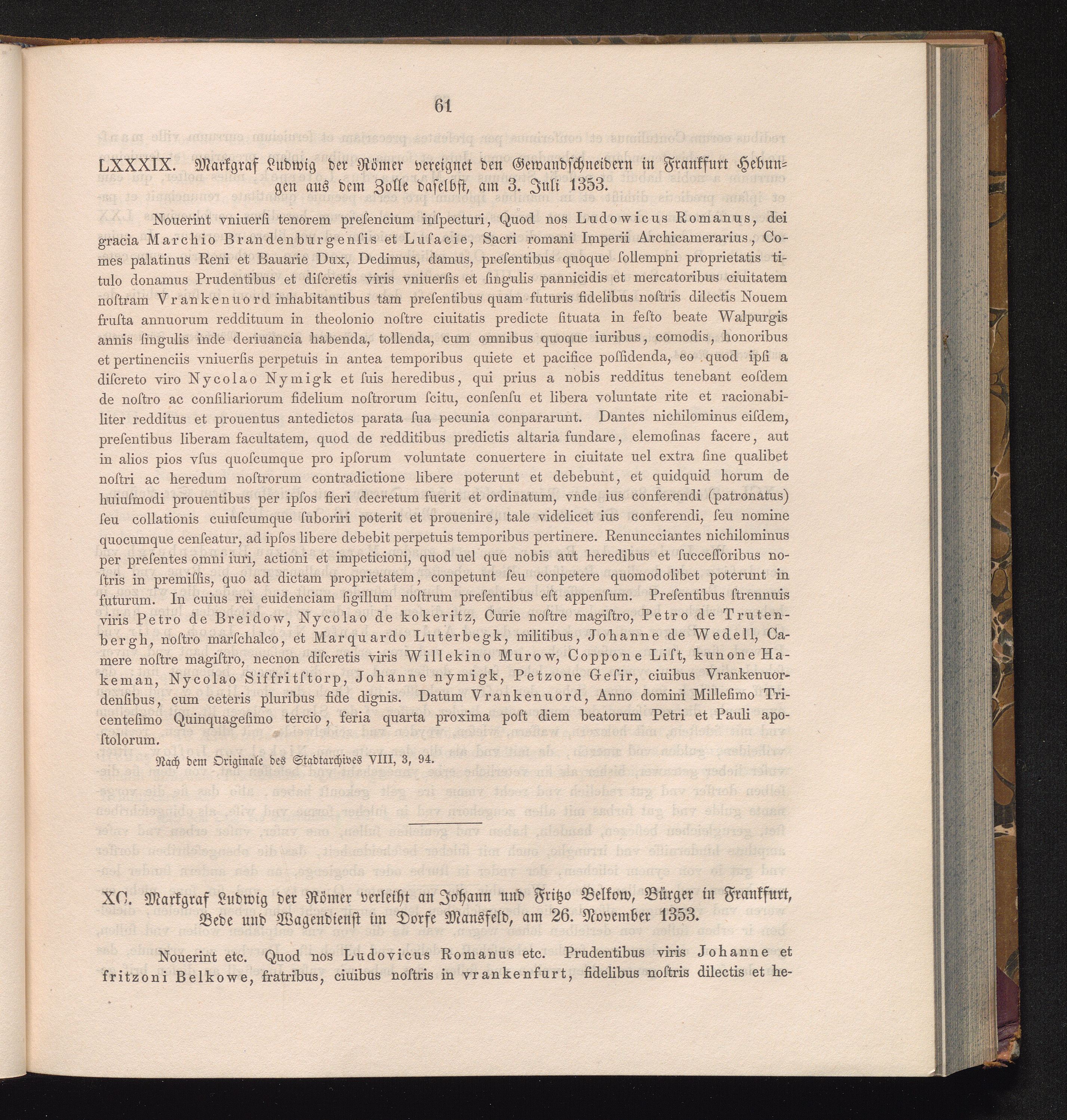 XC. Markgraf Ludwig der Römer verleiht an Johann und Fritzo Belkow, Bürger in Frankfurt,[...]
