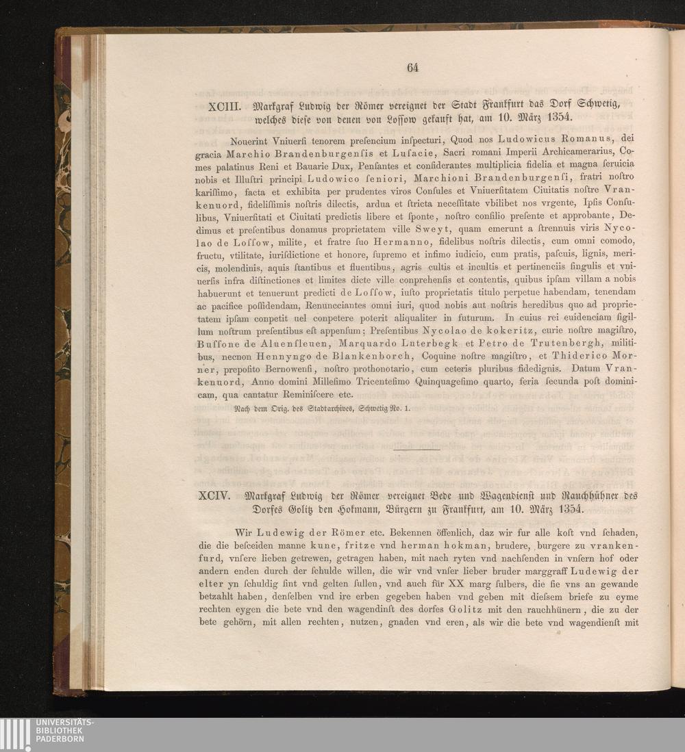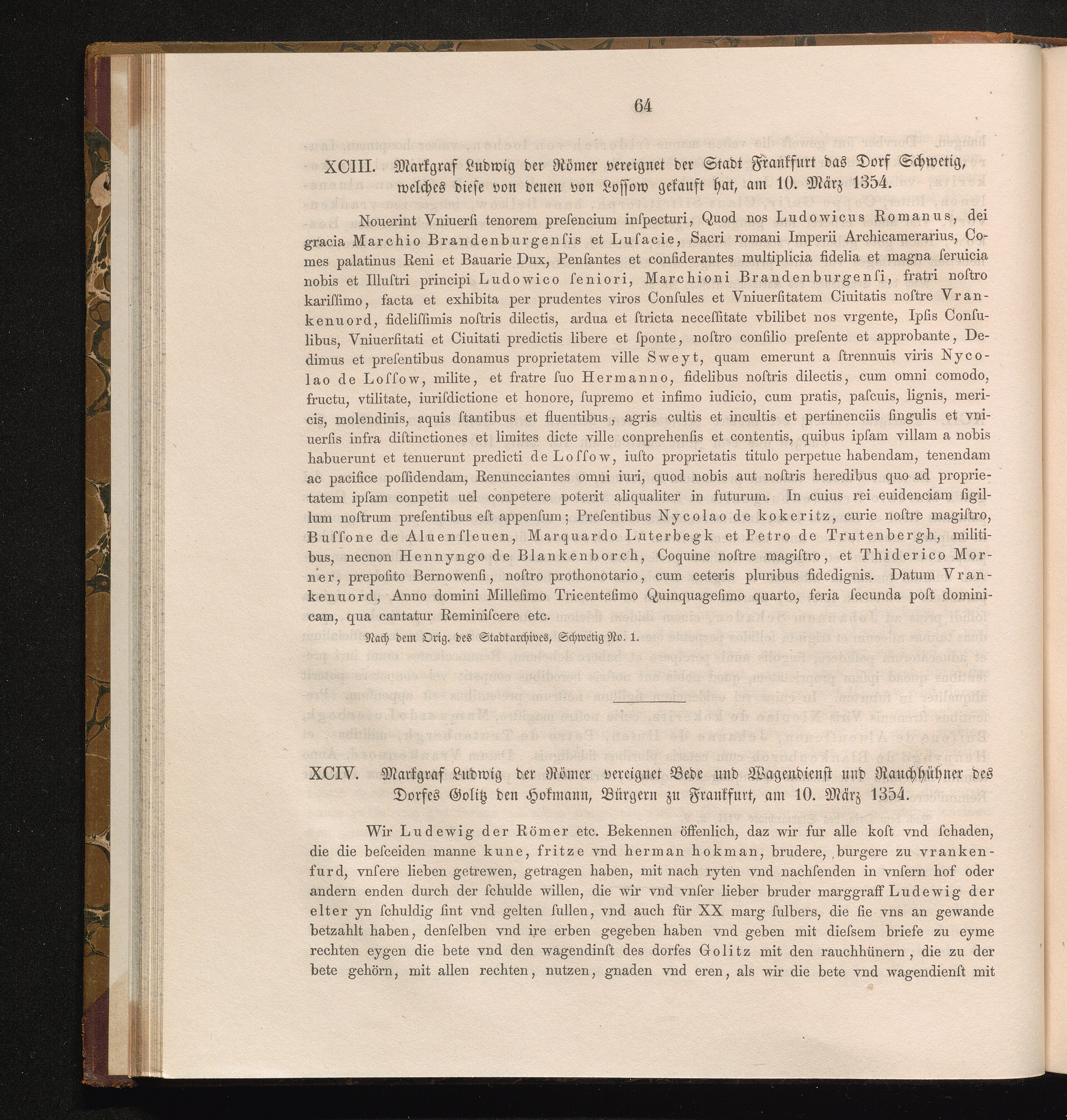 XCIV. Markgraf Ludwig der Römer vereignet Bede und Wagendienst und Rauchhühner des[...]