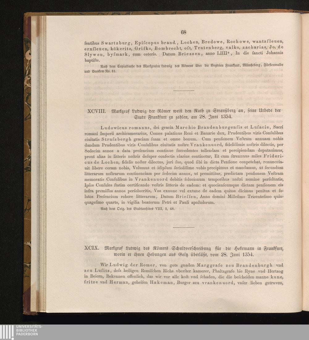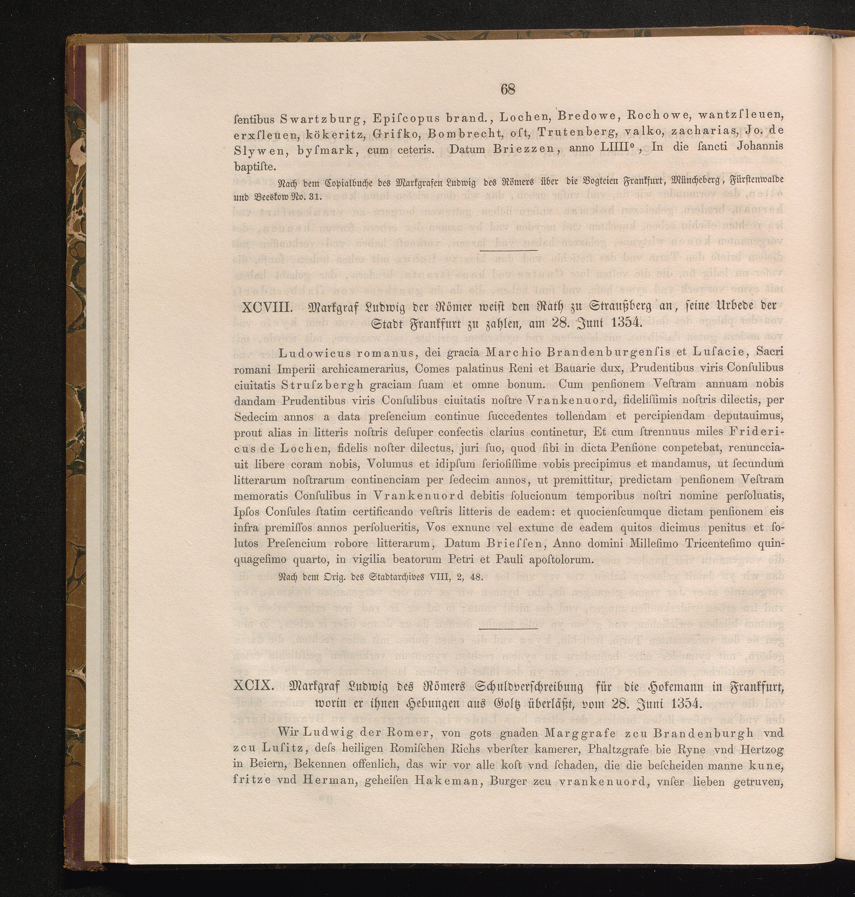 XCIX. Markgraf Ludwig des Römers Schuldverschreibung für die Hokemann in Frankfurt,[...]