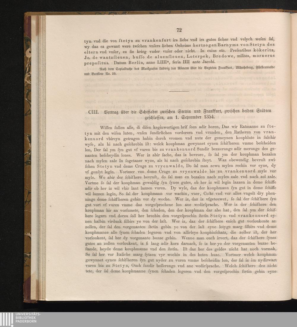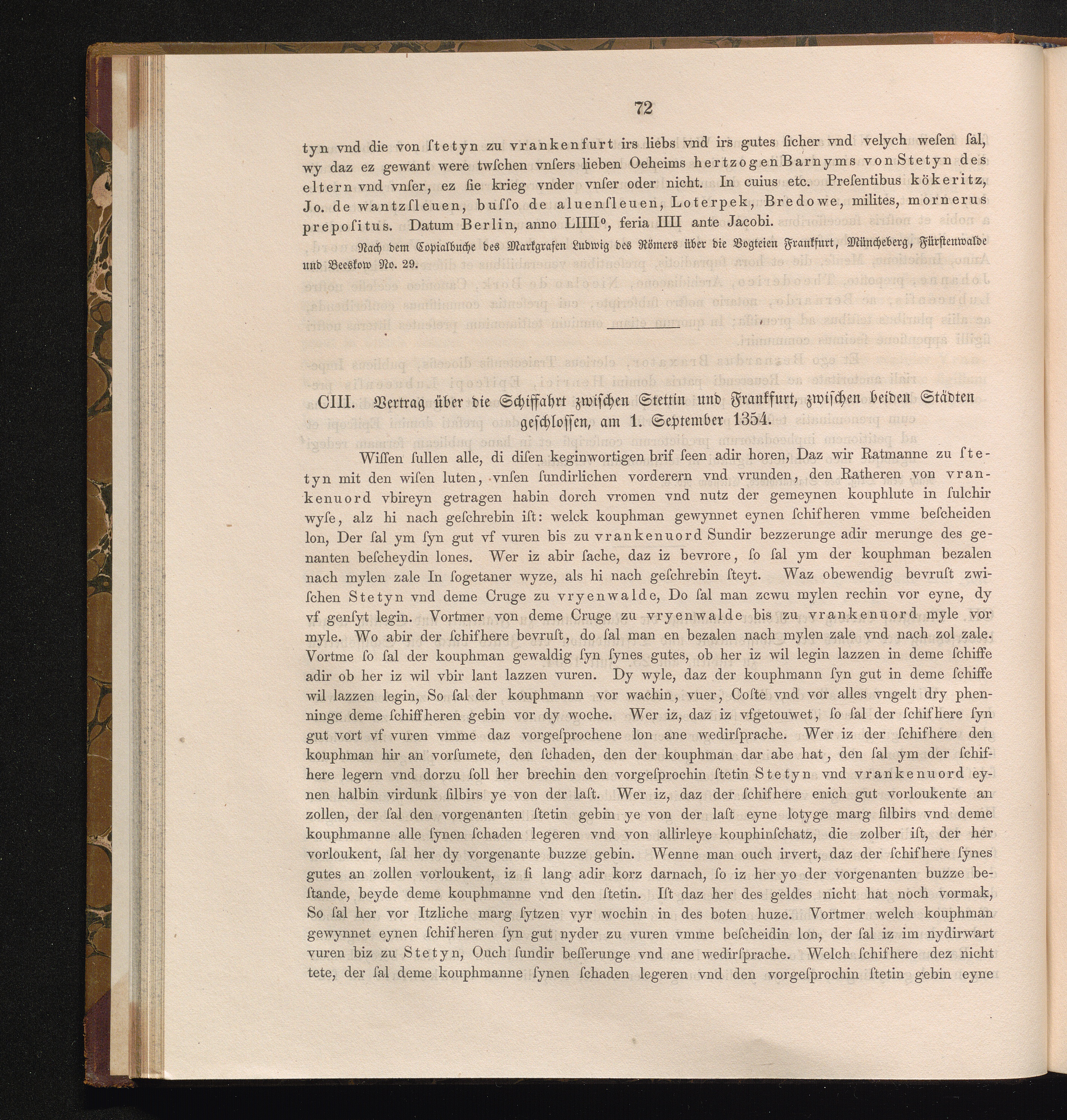 CIII. Vertrag über die Schiffahrt zwischen Stettin und Frankfurt, zwischen beiden[...]