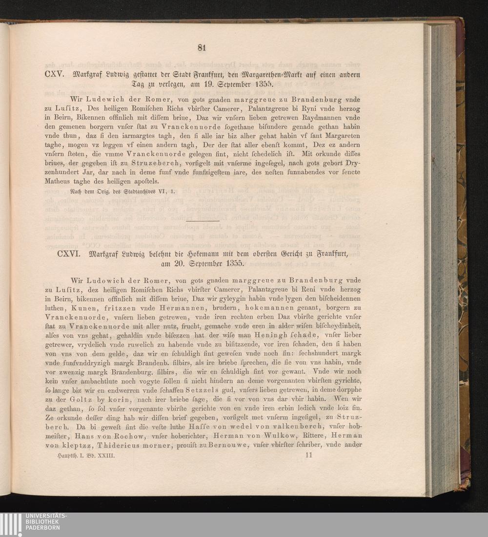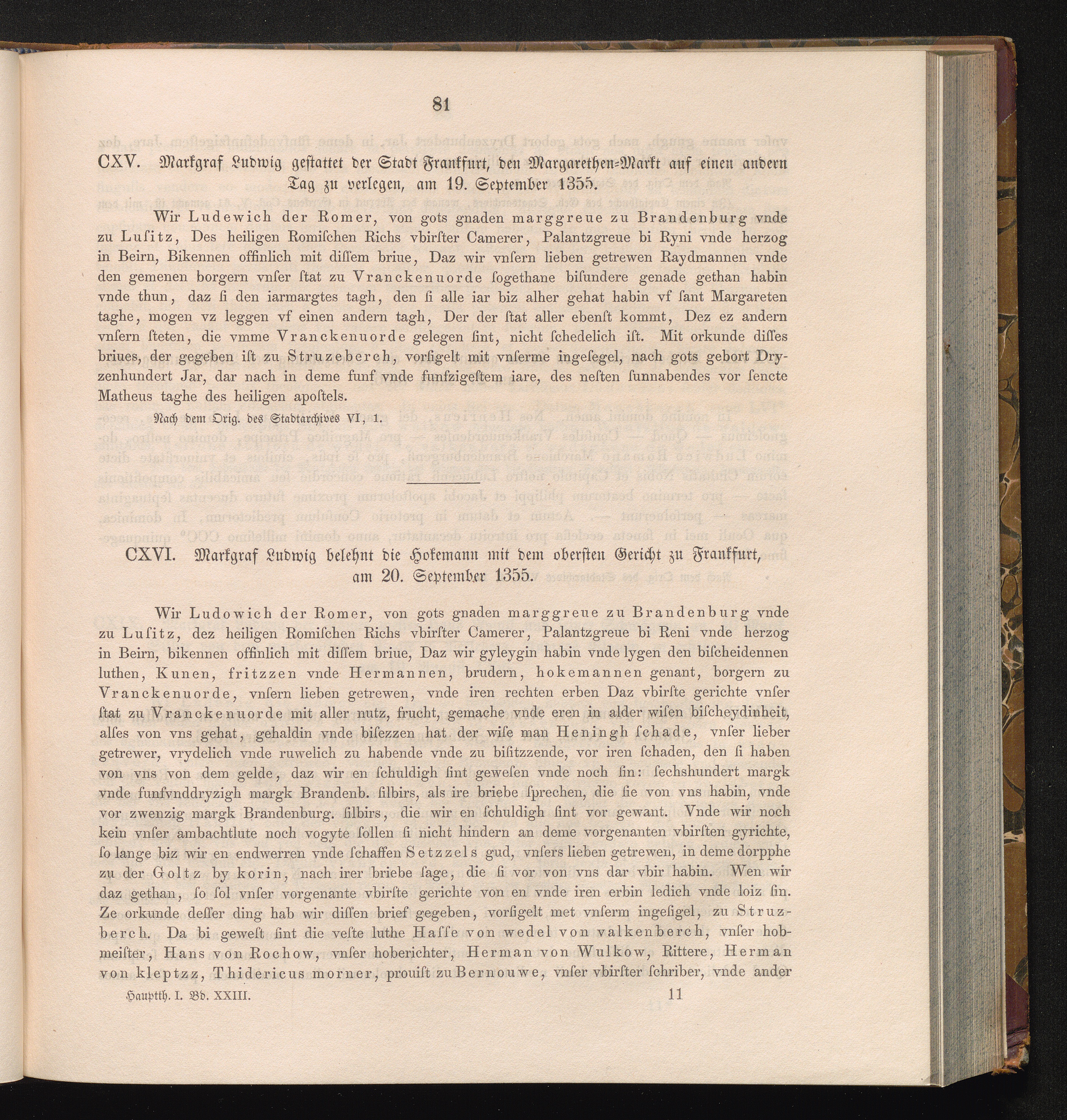CXVI. Markgraf Ludwig belehnt die Hokemann mit dem obersten Gericht zu Frankfurt,[...]