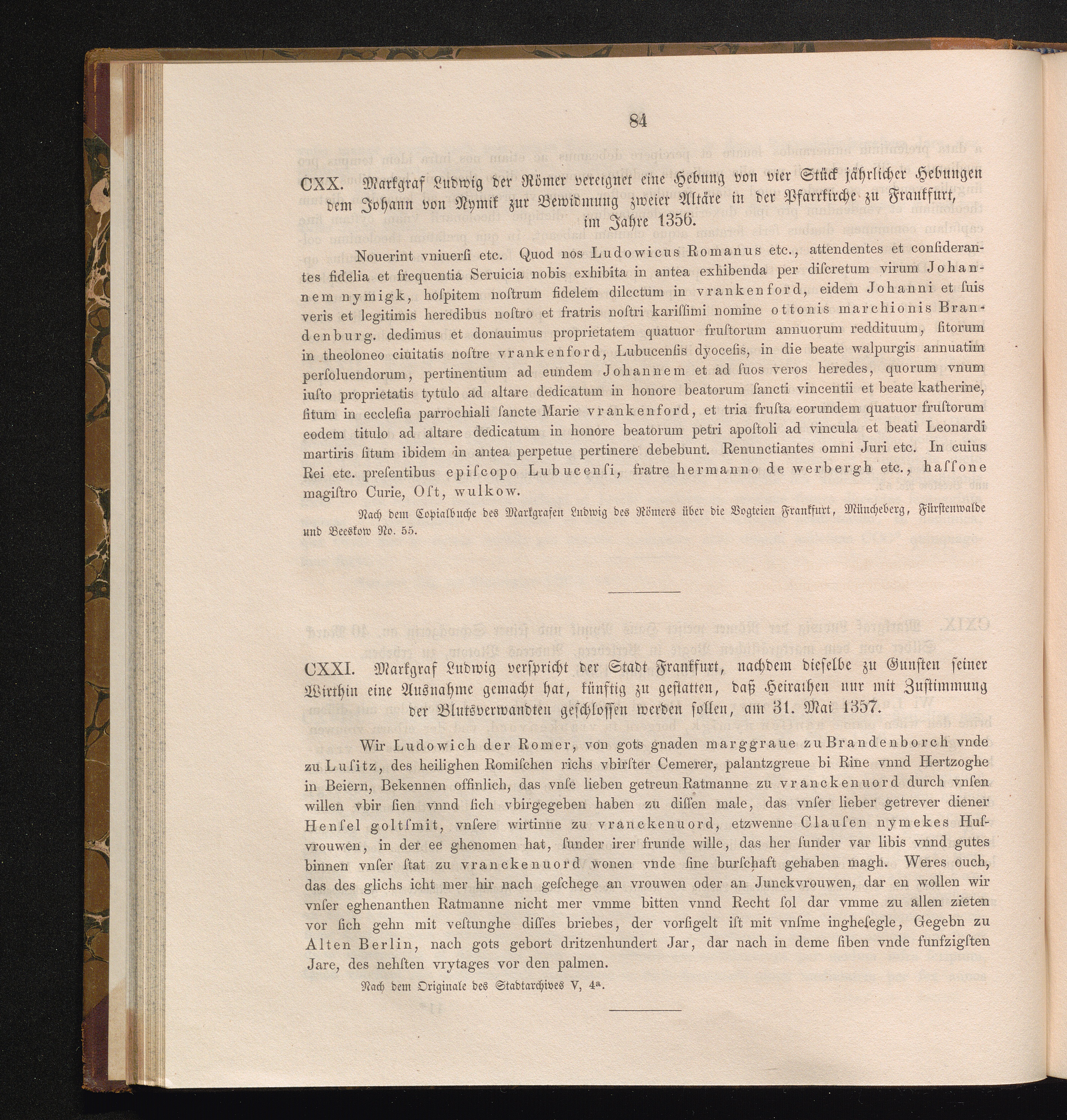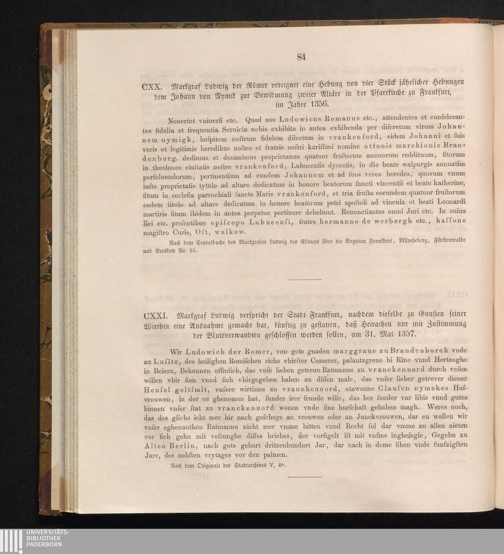 CXXI. Markgraf Ludwig verspricht der Stadt Frankfurt, nachdem dieselbe zu Gunsten[...]