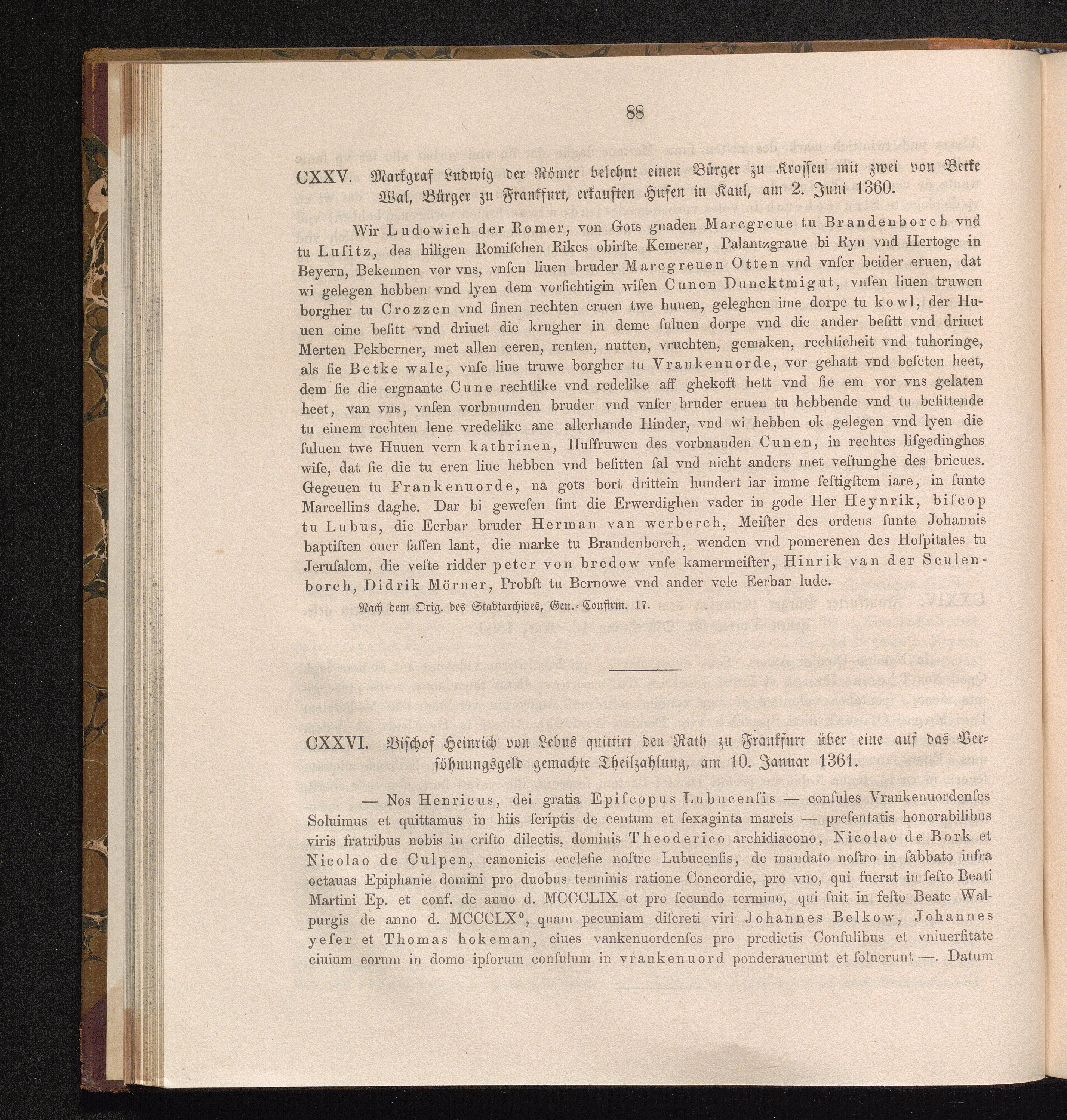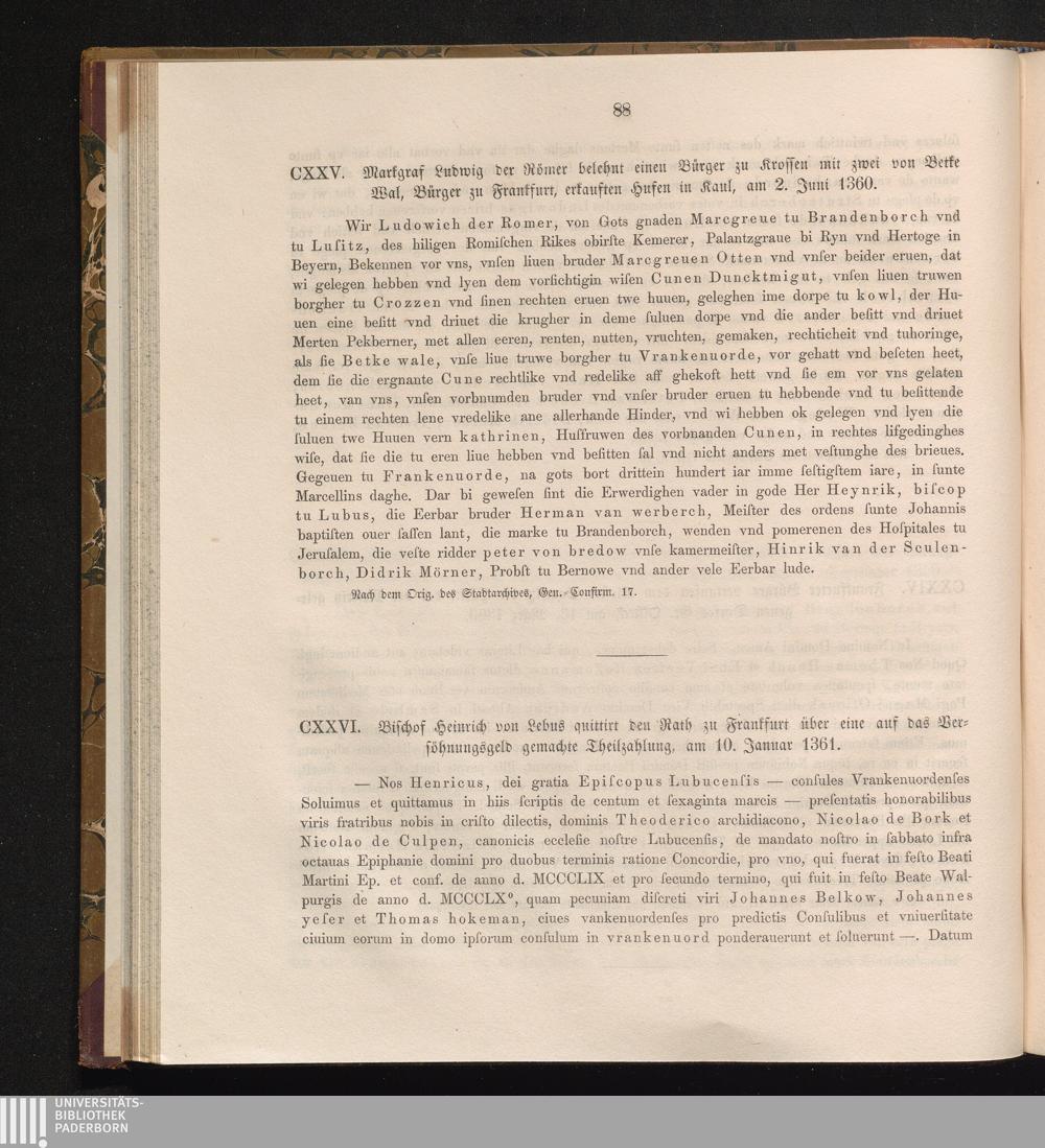 CXXVI. Bischof Heinrich von Lebus quittirt den Rath zu Frankfurt über eine auf das[...]