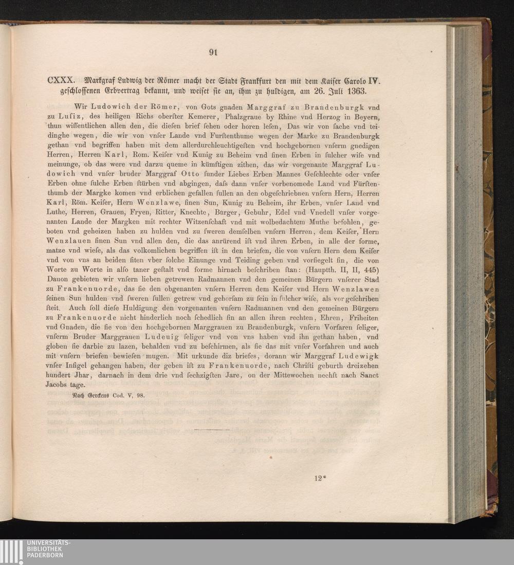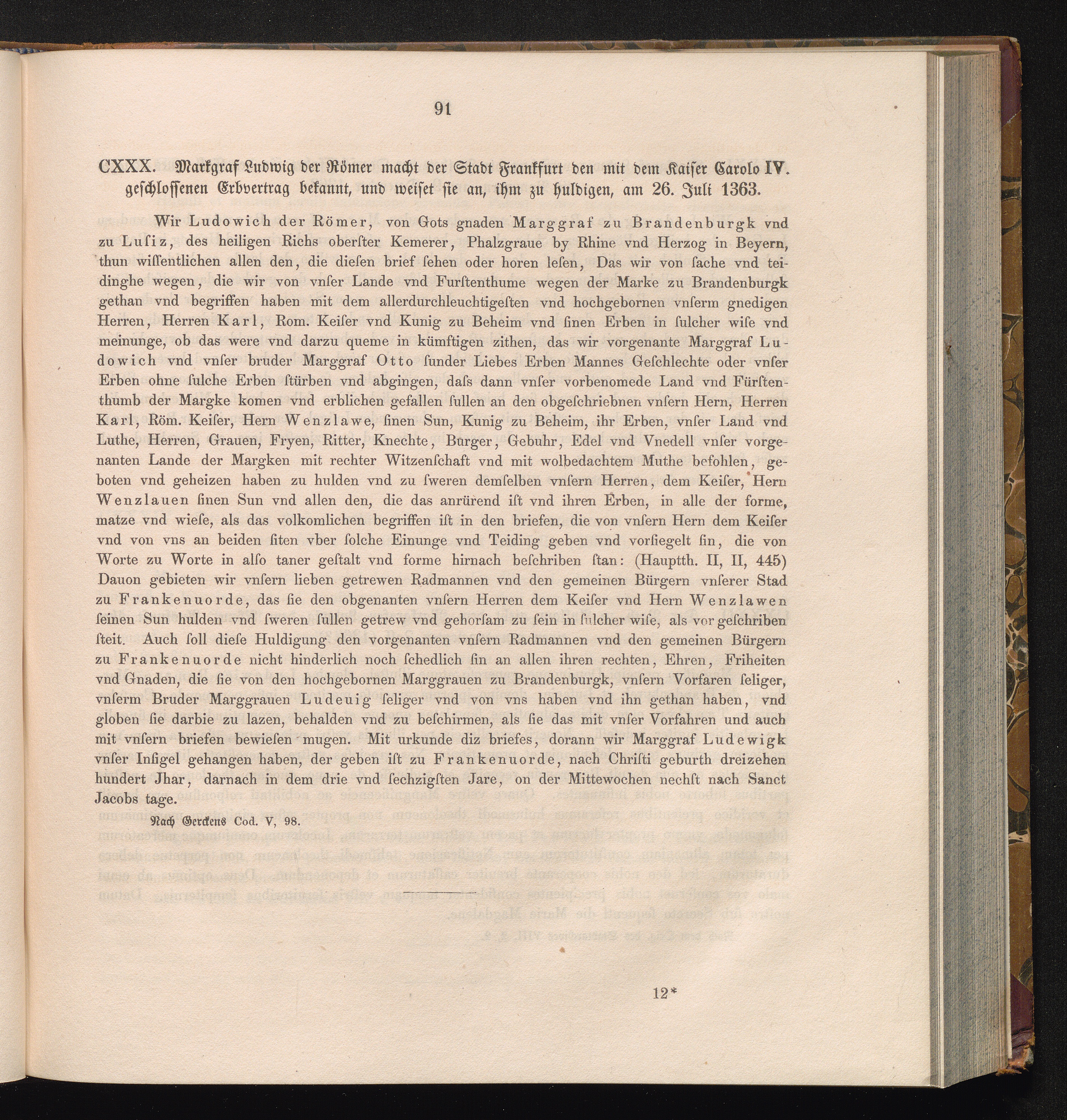 CXXX. Markgraf Ludwig der Römer macht der Stadt Frankfurt den mit dem Kaiser Carolo[...]