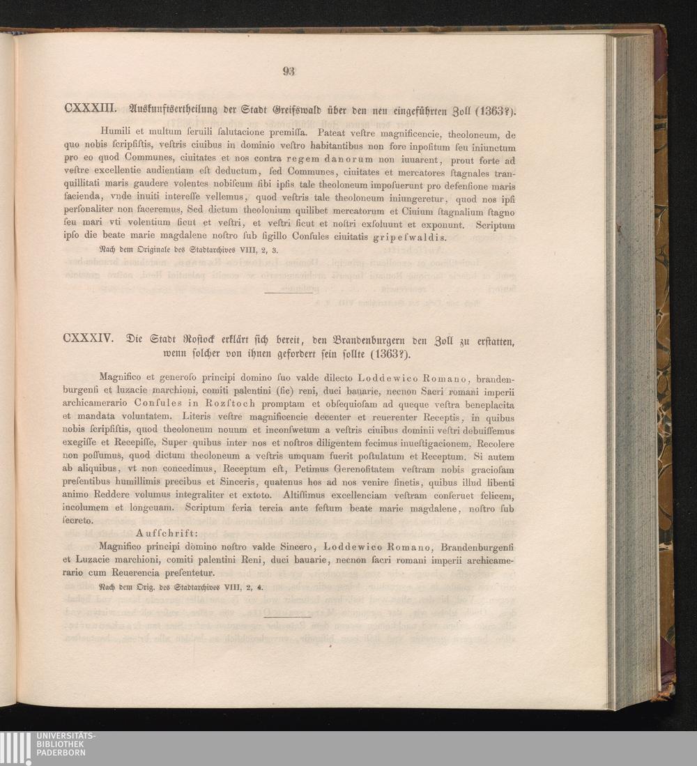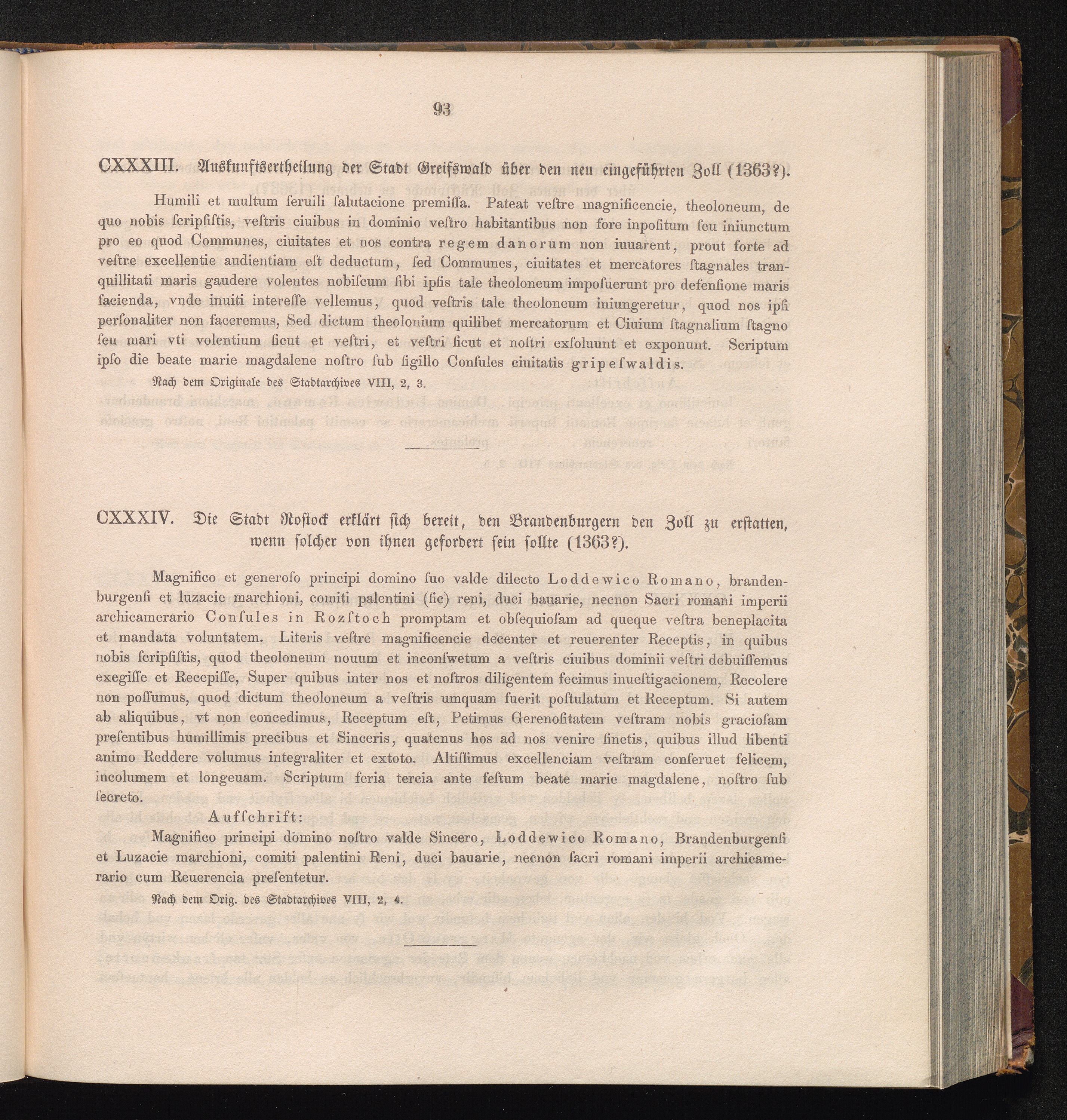 CXXXIV. Die Stadt Rostock erklärt sich bereit, den Brandenburgern den Zoll zu erstatten,[...]