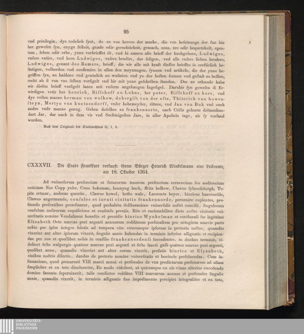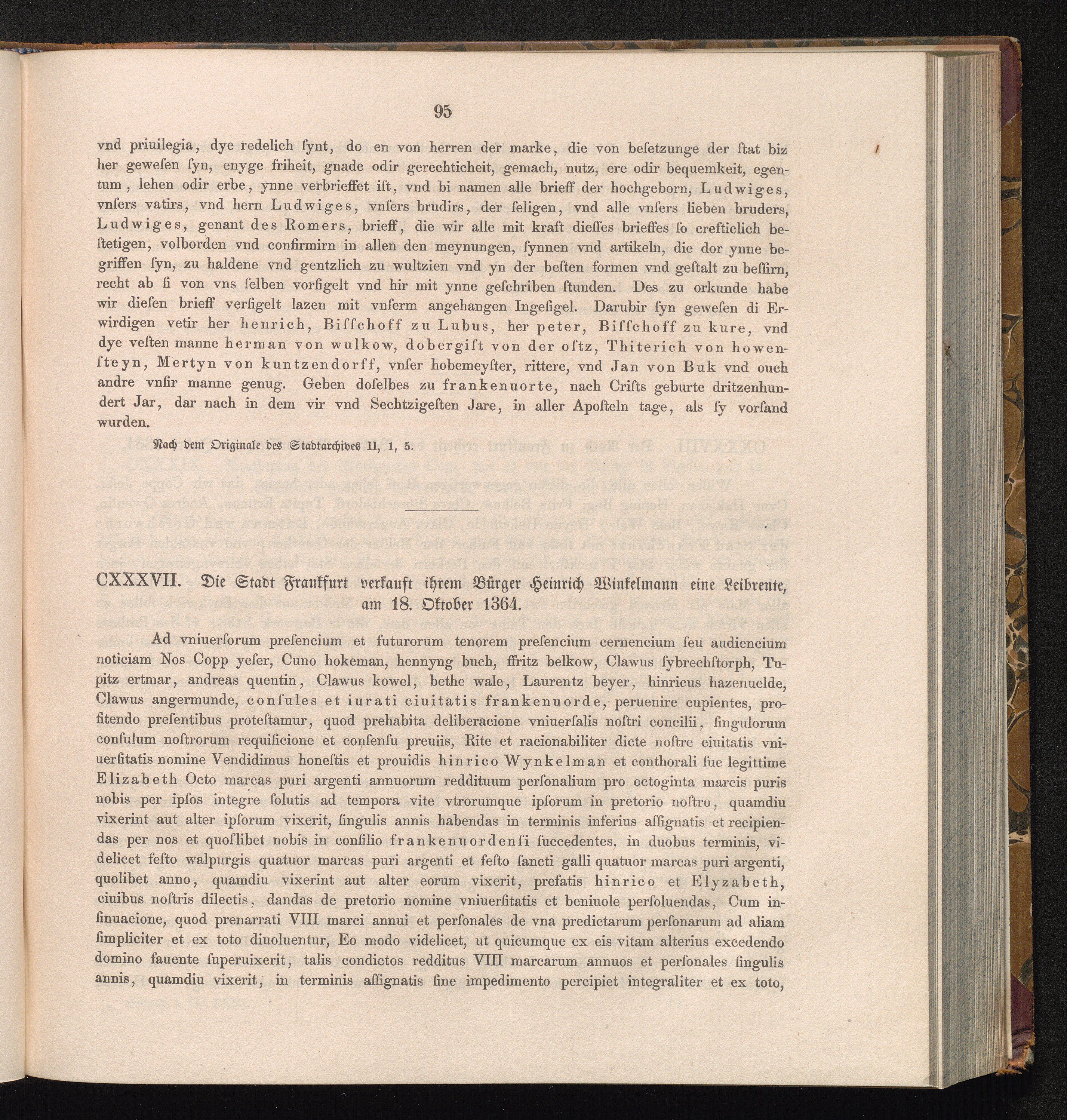 CXXXVII. Die Stadt Frankfurt verkauft ihrem Bürger Heinrich Winkelmann eine Leibrente,[...]