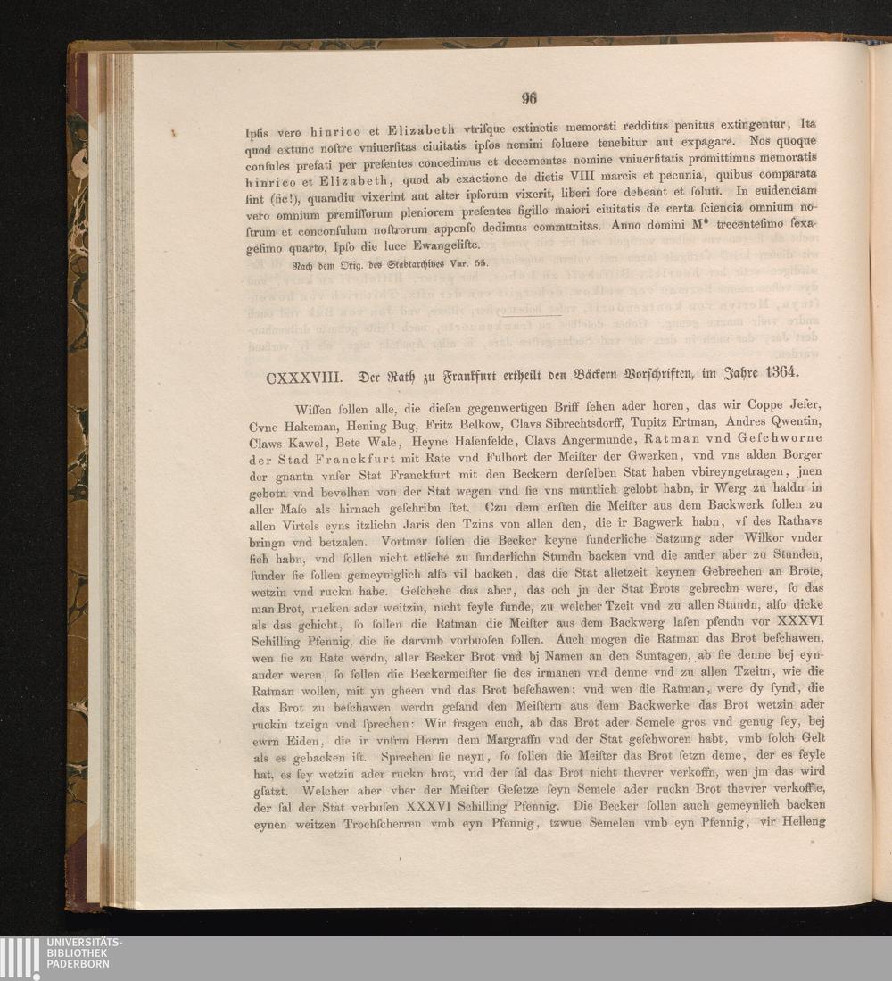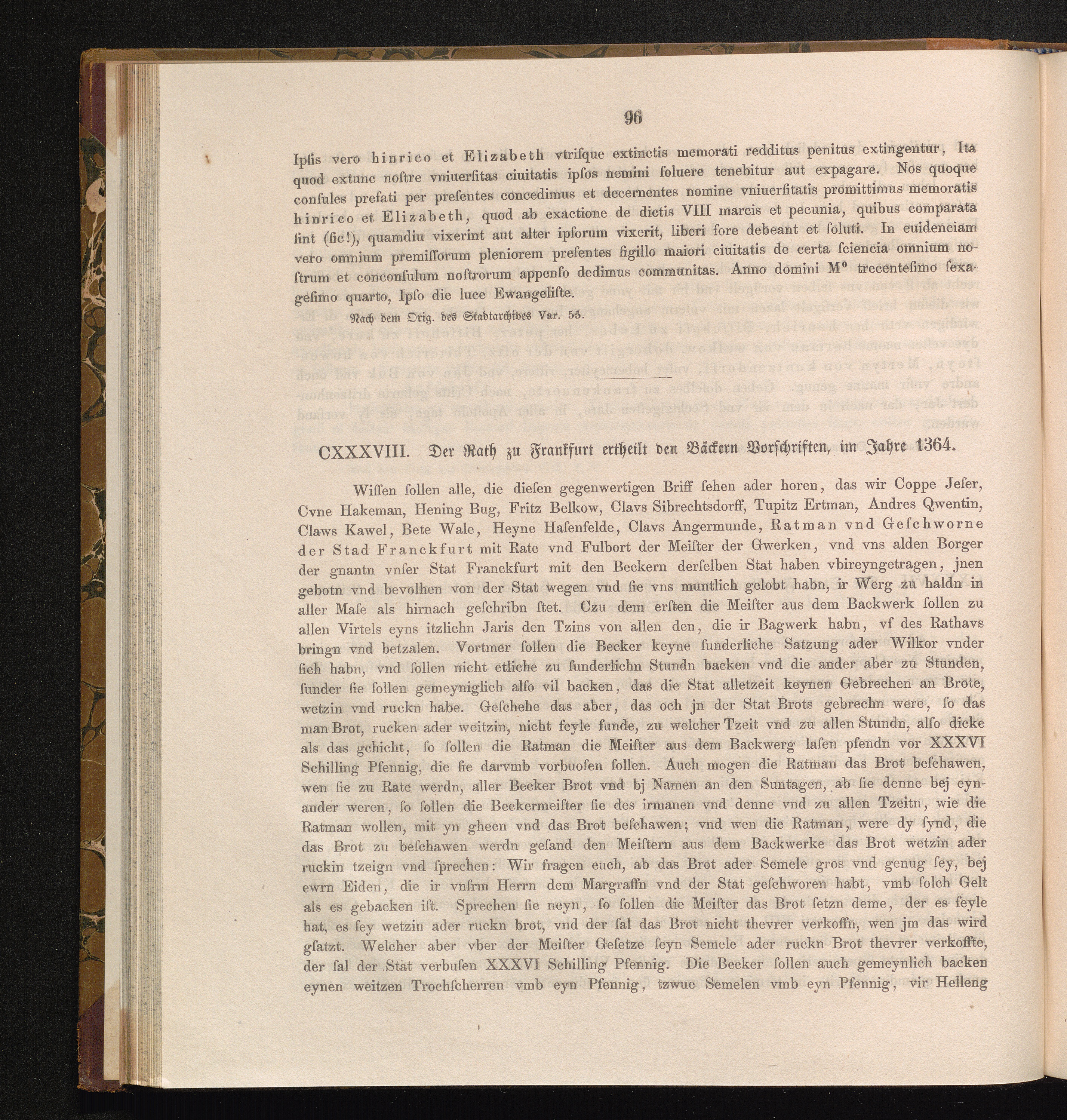 CXXXVIII. Der Rath zu Frankfurt erheilt den Bäckern Vorschriften, im Jahre 1364.