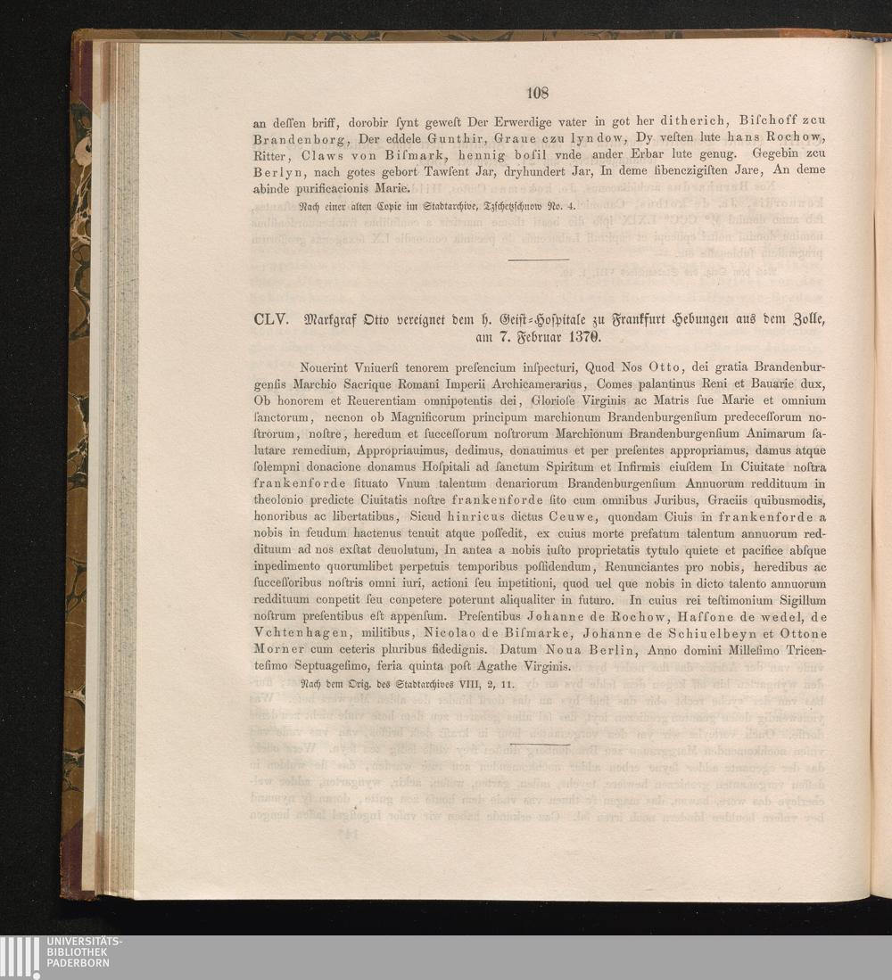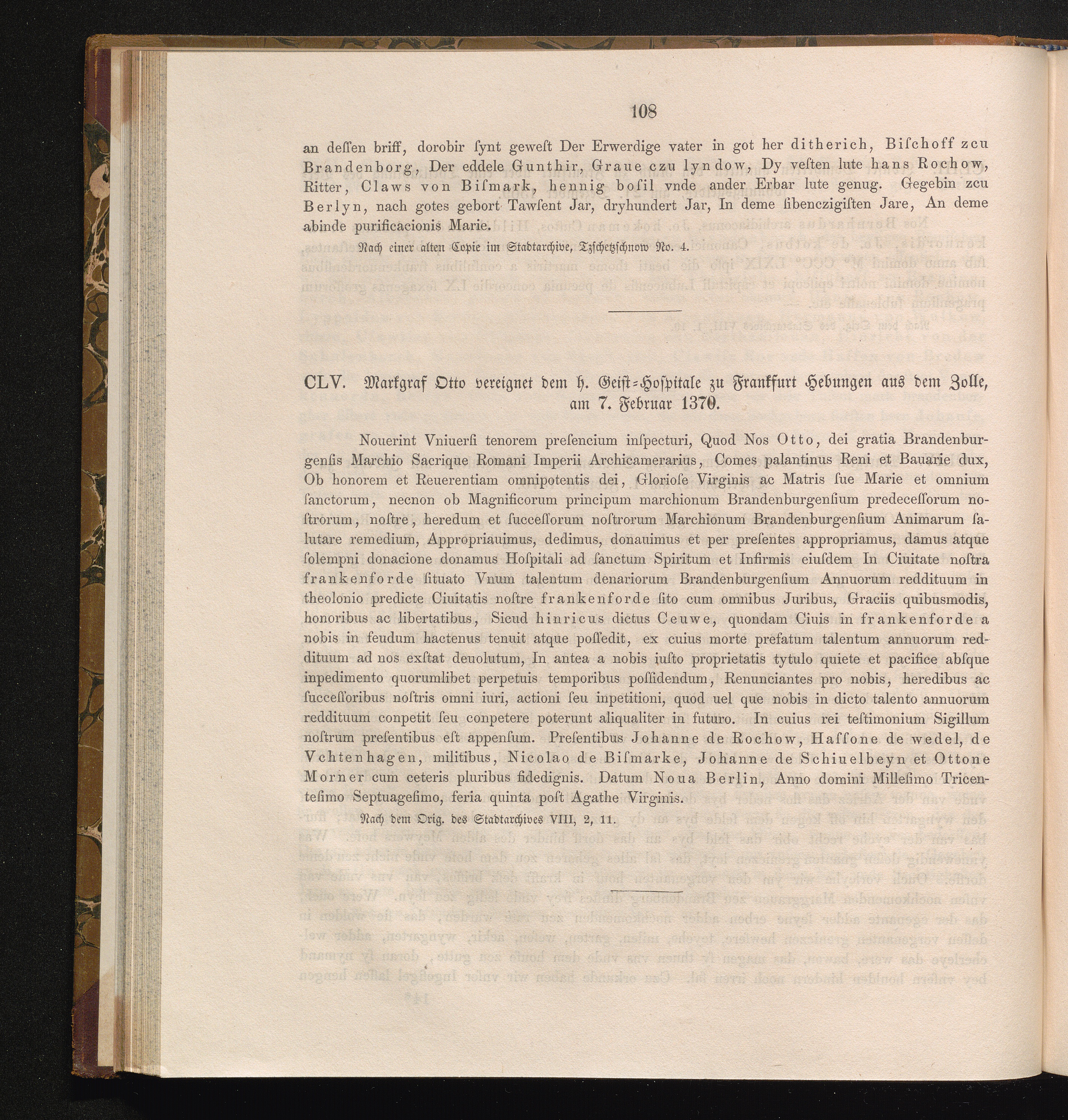 CLV. Markgraf Otto vereignet dem h. Geist-Hospitale zu Frankfurt Hebungen aus dem[...]