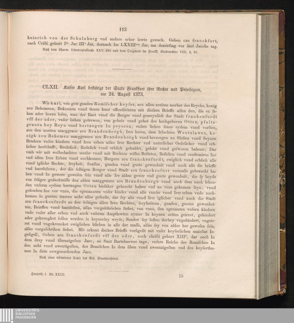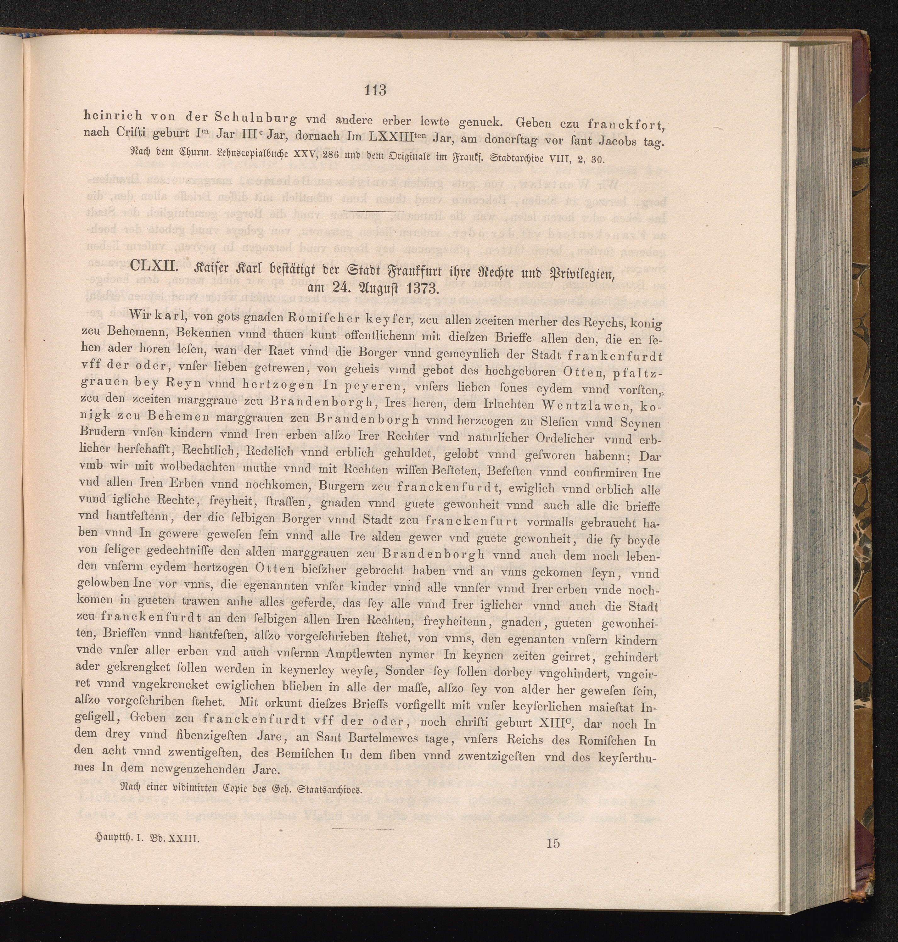 CLXII. Kaiser Karl bestätigt der Stadt Frankfurt ihre Rechte und Privilegien, am[...]